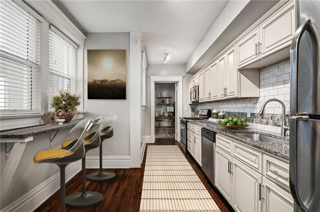 They just don't make them like the used to! Step back in time and prepare to be captivated by the charm of this property. Modern updates have been made throughout while great care was also taken to preserve historic character and details. 2 beds (with 3rd non-conforming bedroom) and 1 full bath with formal dining room, hearth room, 3 season sunroom, and balcony. Kitchen has a built-in breakfast bar, stainless steel appliances, and a pantry. All appliances stay including in unit washer and dryer! This property is truly move-in ready! Monthly HOA includes secured parking, most utilities, building maintenace, snow removal, & more! Basement storage can be leased per unit.