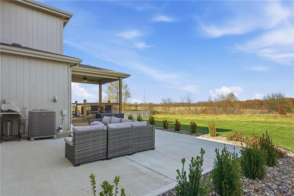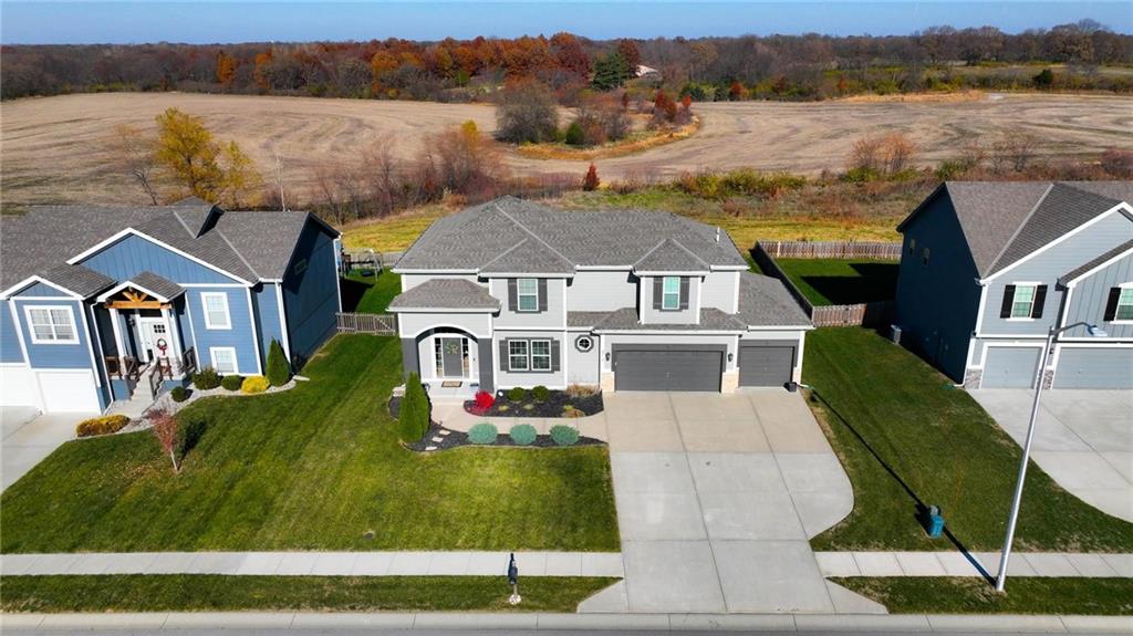 Pristine and "like new", nestled against farmland-this spotless 2 story has it all! Open main floor with 2 story entry, gas fireplace, mud room, built-in banquette w/custom table, walk-in pantry, and wood floors throughout. Expansive windows showcase the peaceful view and outdoor living space featuring a covered wood deck and new 22x20 patio w/weatherproof covered TV. The roomy 2nd floor offers walk-in closets, feature walls, main bath with double vanity, and laundry room. Retreat to the private primary bedroom with soaking tub, separate shower, double vanity, and walk-in closet. The possibilities are endless in creating your dream space in the lower-level w/bath stub and Egress window. Quietly located "off the beaten path", yet close access to freeways and shopping. This is one has it all!