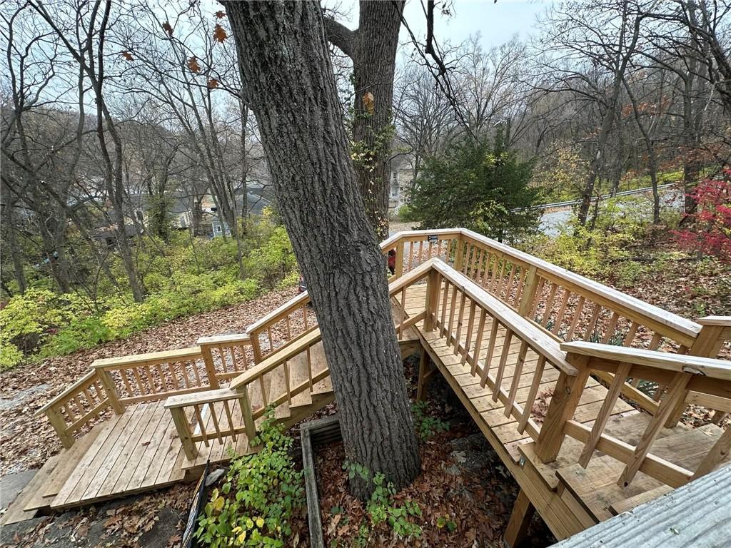Sitting on the side of the hill in Excelsior Springs you will find a 2-bedroom, 1 bath bungalow with woods on side of house. The view is spectacular! Home offers a formal dining, main floor laundry and walkout basement plus off-street parking. Newer stairs up to house. If you want to live in the country but can't afford it, then this house is for you. Home is selling in its present condition.