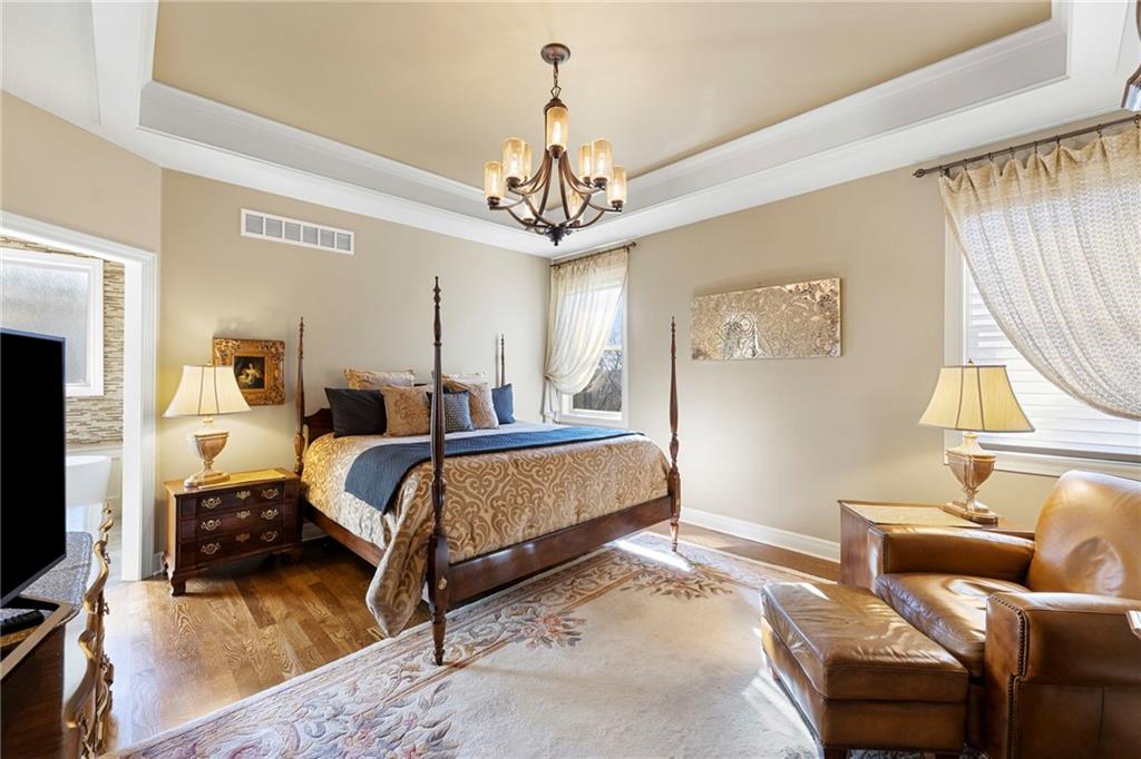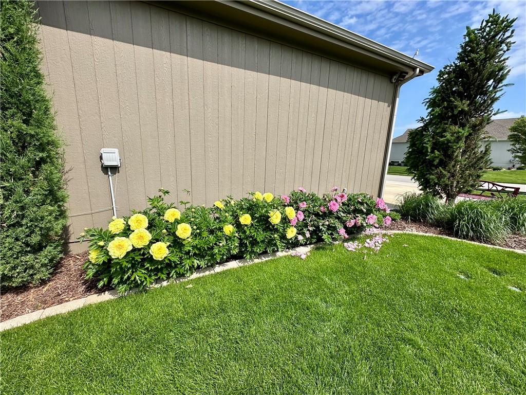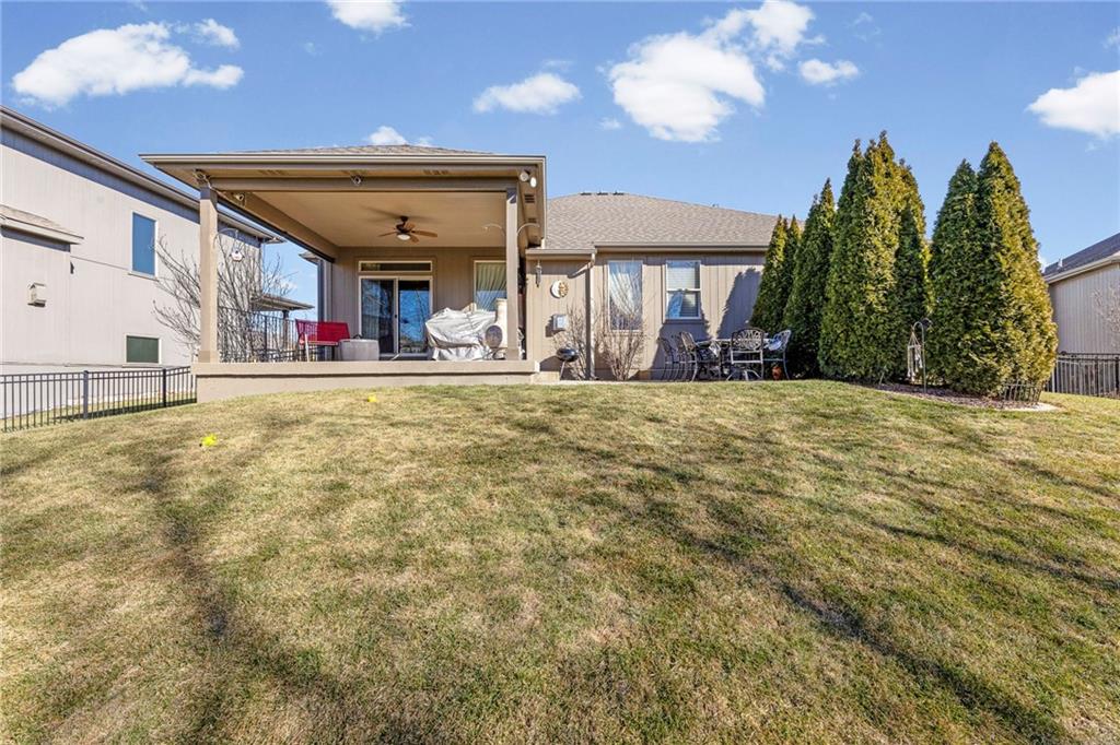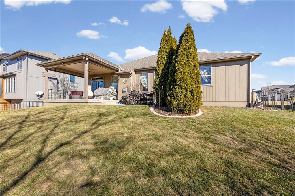 Welcome to a beautifully finished ranch in Stonebridge Trails, where thoughtful upgrades, warm design, and effortless everyday living come together. From the moment you step inside, the main level feels open and inviting with beveled ceilings, a gas fireplace with TV hookup, and large windows dressed in custom Hunter Douglas drapes and blinds that elevate every room. The kitchen is the true heart of the home, featuring painted cabinets, a spacious island, double ovens and two pantries, with a layout that flows seamlessly into the dining and living spaces—perfect for casual mornings or hosting friends. The primary suite offers a peaceful retreat with two walk-in closets, a soaking tub, beautifully tiled walk-in shower, and plenty of space to unwind. A second bedroom and full bath on this level add comfort and flexibility for guests, work, or hobbies. The daylight lower level expands your living space dramatically with a generous family room, wet bar, and full bath—creating an ideal setup for entertaining, movie nights, or extended stays. Two former bedrooms were combined to create a second primary-style suite, oversized and private, making it perfect for multigenerational living, long-term guests, or anyone who wants a retreat that feels spacious and tucked away. Outside, the covered stamped concrete patio invites you to slow down and enjoy the beautifully maintained landscaping. Thoughtfully designed flower beds with stone accents and lush greenery wrap the home in color and charm throughout the seasons. Additional upgrades include central vacuum, smart doorbell, irrigation, exterior cameras, upgraded garage floors, and access to premier community amenities—multiple pools, trails, clubhouse, tennis courts, and more. This is a home where convenience meets elevated living in one of Olathe’s most sought-after neighborhoods.