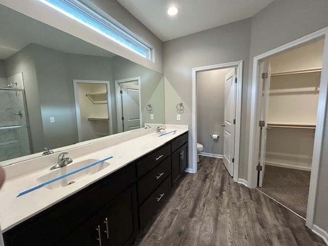 Open-concept Reverse 1.5-story home, showcasing luxury vinyl plank flooring throughout and a fantastic Living Room with floor-to-ceiling windows flooding the space with natural light. Featuring 4 spacious bedrooms (2 on the main level) and high ceilings, this home offers a grand primary suite with a massive double vanity, walk-in closet, shower and private water closet. The Kitchen, complete with a large island, walk-in pantry, and adjacent dining area, flows to a partially covered deck—perfect for entertaining. The finished basement boasts a expansive Rec Room with daylight windows, 2 large bedrooms both featuring walk-in closets, a full bath, and abundant storage. Buyer & Buyer's Agent to verify all information including square footage, zoning, taxes & room sizes during the Inspection Period.