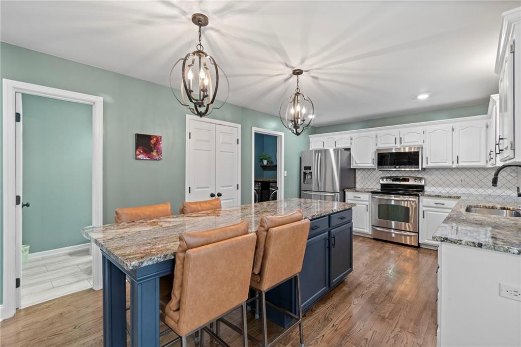 WELL MAINTAINED 2-STORY ON A QUIET TREE LINED STREET WITH A FRONT PORCH FOR RELAXING. Formal Dining Room just off the entry and beautiful hardwood floors throughout the main level. Open floor plan with kitchen/great room updates in 2020. Added new hardwoods, granite countertops, new island and remodeled 1/2 bath and off-kitchen laundry room with luxury vinyl tile. Newer stainless steel appliances. New stone and mantel on fireplace. Custom blinds throughout first floor. Upstairs has 4 bedrooms with an oversized Master. Master Bath has double bowl vanity, Jetted tub, and large Walk-in closet. Beautiful large window in second bedroom could make a sun-filled office space! Tile and carpet in finished basement with 1/2 bath and a wet bar for entertaining. Large storage room adds to the basement space. Step out of the kitchen onto a peacefully landscaped backyard with patio and a HUGE side yard. NEIGHBORHOOD HAS TWO SWIMMING POOLS AND PLAY AREA WITH PLAYGROUND. Large picture windows with views of the beautiful treed lot throughout the home! Convenient access to highways, dining and shopping and located in award winning Liberty School District. This home is move-in ready and it shows!!!
