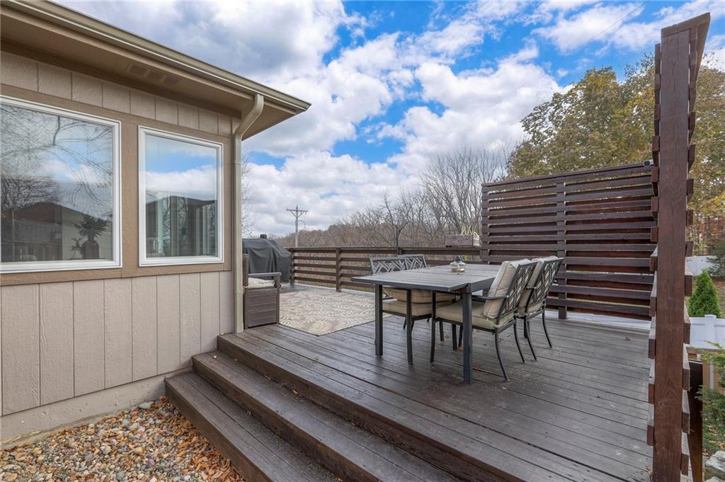 Discover this immaculately maintained, custom-built reverse 1.5-story home perched high atop the hills of the desirable Brittany Ridge subdivision. Flooded with natural light, this spacious layout offers both comfort and convenience with the primary suite and a second bedroom located on the main level. The beautifully designed kitchen features a huge island, gas cooktop, double ovens, and a large walk-in pantry—perfect for everyday living and entertaining. A bright breakfast area opens directly to the upper deck, creating an ideal indoor/outdoor flow. The walkout lower level expands your living space with two additional bedrooms, full bathroom, a dedicated office, a generous great room complete with a wet bar, plus a workshop/storage area. The oversized, three car garage has plenty of room for vehicles, storage, tools, and hobbies. Enjoy the outdoors in your fenced backyard with both upper and lower decks and a peaceful backdrop of mature trees. This home has been exceptionally cared for and is truly move-in ready. Room sizes, square footage and taxes are estimates and should be verified by buyer.
