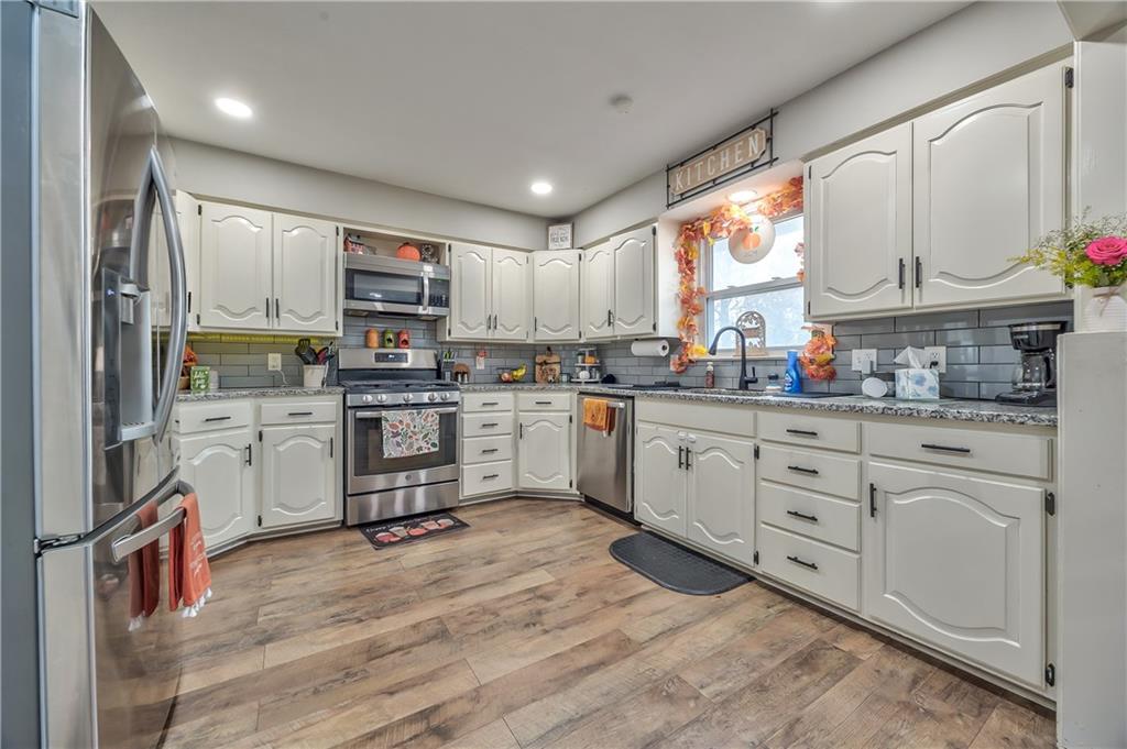 Tucked inside the Gardner city limits on a rare 1-acre, tree-filled lot, this 3-bedroom, 2-bath side-by-side split level offers space, privacy, and a little bit of country feel without leaving town. You’ll love the updated kitchen featuring stainless steel appliances, plenty of cabinet space, and a nice flow into the dining area and upper living room. A second living space on the lower level gives you room to spread out—perfect for movie nights, hobbies, or a playroom. The walkout basement opens to a shady patio, and there’s a raised deck overlooking the backyard, so you’ll have great spots to enjoy your morning coffee or evening cookouts. The property is dotted with mature trees, giving the whole place a peaceful, tucked-away vibe. For anyone needing extra storage or a place to work, the 20x40 detached shop building is a huge bonus. There’s also a large unfinished sub-basement, ideal for storing seasonal items or finishing later if you want even more space. Homes with acreage like this, inside city limits, don’t come up often—this one is ready for its next owner to make it their own.