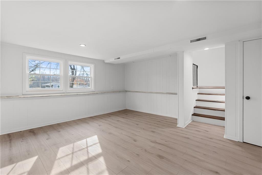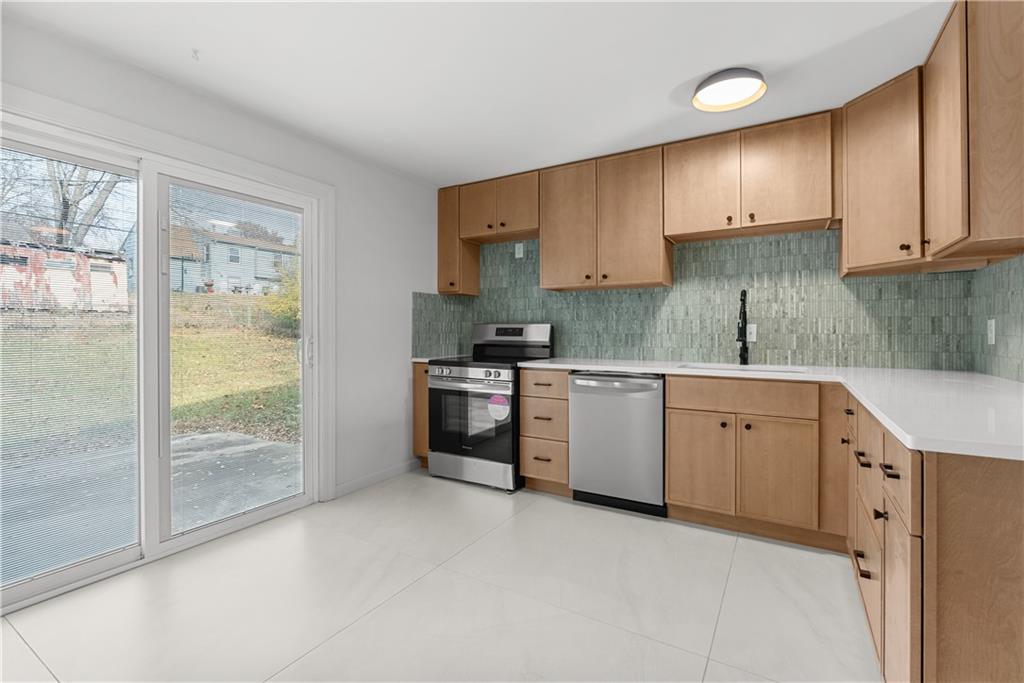 Just in time for the Holidays - mid century modern flair with complete cosmetic renovations throughout. Luxury design choices featuring a brand new kitchen with green marble backsplash, quartz countertops, stainless appliances and new wood grained cabinetry. Stunning bathroom remodels with new shower surrounds, vanities and attention to detail. Newly refinished hardwood floors, newer pella windows, newer hardy board siding, lvt in the finished basement area and updated fixtures throughout. Large fenced in lot for entertaining. Owner/Agent