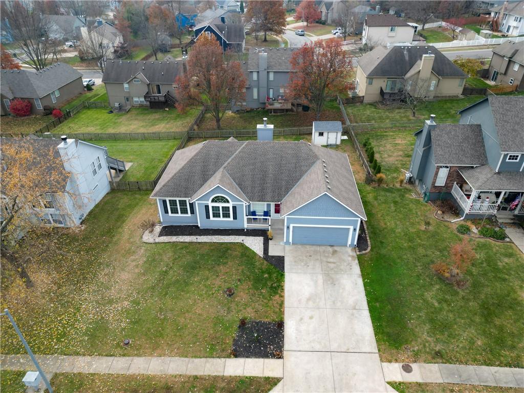 Discover the perfect blend of comfort and convenience in this TRUE RANCH home in Raymore! Amazing curb appeal! Step inside to find gleaming hardwood floors flowing through the kitchen, dining area, living room, and hallways. The kitchen is built for both cooking and gathering, offering abundant cabinetry, newer stainless steel appliances, and a center island for extra prep space. The family room is warm and welcoming with a gas fireplace, crown molding, ceiling fan, and classic blinds. The primary suite features brand-new luxury vinyl plank flooring, a walk-in closet, and a private tiled bath complete with dual sinks, a whirlpool tub, and a walk-in shower. Two additional main-level bedrooms include new flooring, updated blinds, and generous closets, with a tiled hall bath and shower/tub combo nearby. Enjoy the convenience of bedroom-level laundry—a true everyday luxury! The finished basement expands your living options with a spacious family room, built-in shelving, a true 4th bedroom with daylight windows, a large closet, new floors, and a full tiled bath with a shower/tub combo. Major updates include a high-efficiency Lennox furnace and AC, newer windows, and a new sump pump with battery backup for peace of mind. Outside, relax on the covered deck, appreciate the level lot with new landscaping, wood fence, and enjoy the added storage of a backyard shed. The neighborhood offers fantastic amenities—clubhouse, pool, tennis courts, playground, plus you're walking distance to the new Centerview Butterfly Garden and Boardwalk and Price Chopper! Plus, you're just a short drive to Silver Lake. This one checks all the boxes for easy Raymore living!