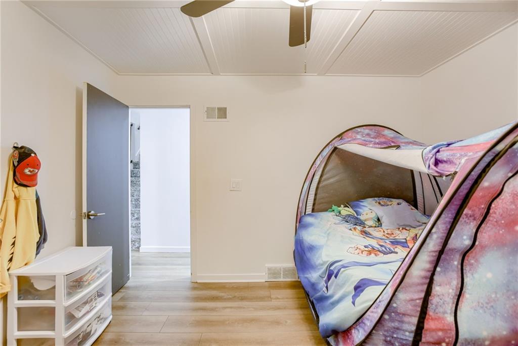 Don't miss this updated 4 bedroom home in The Coves! Modern touches are all throughout this home, including an updated kitchen, 2.5 baths and beautiful hardwood floors. The kitchen has a large pantry for all of your extra storage and flex space. Upstairs loft can be used as a home office or an additional living room. Finished basement with brick fireplace, half bath and laundry. Large 2 car garage with extra storage space.