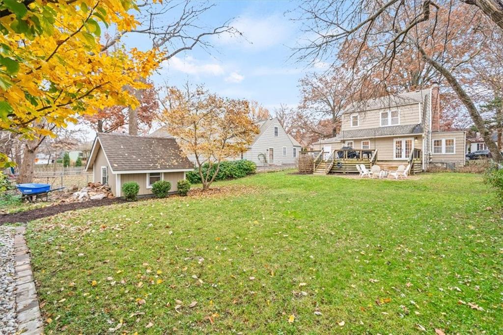 Charming inside and out, this Westwood 2-story home sits on a picturesque, tree-lined block and a large lot. Beautifully updated with original character & detail, including curved archways, hardwood floors, fireplace, and woodwork. Living room with a sitting area next to the fireplace, perfect for a cozy Winter day. Private den/office space off the main living area. The dining room features a new, built-in banquette and light fixture. Main-level half bath off the kitchen. All appliances stay with the home, including the washer/dryer. Large primary with a walk-in closet. Updated interior paint. Full, dry basement with lots of storage. Attached garage and storage shed in the backyard. Large deck overlooks the big backyard. Room to add onto this house and still have a big yard. Walk to coveted Westwood View Elementary, Fairway Shops, Woodside, St. Agnes, Miege, parks, and more. Minutes to the Plaza and the highway. SM East area.