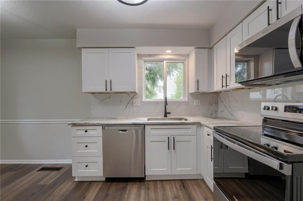 Location is PRIME! Sought-after Greenbrier community with the PRIVACY of a duplex! Situated on a quiet street on the perimeter of the Greenbrier complex, this home has ALL THE QUALITY UPDATES with a NEW 50-year roof (insurance discount!), new air conditioner, new patio door, new semi-custom cabinets, new granite counters, new tile backsplash, new stainless steel range, dishwasher, and microwave, new lighted ceiling fans in all the bedrooms and the dining/bonus room. New vanities and mirrors in the bathrooms with tasteful ceramic tile in the upstairs bath, carpeted stairs, and fresh LVP throughout. Low HOA dues include lawn maintenance, trash/recycling and snow removal, 2 swimming pools, a tennis court, dog stations, kids' play gyms, a clubhouse with a gym, party room, and kitchen. Dog stations in green spaces! The monthly newsletter lists all the activities and events for residents; diverse and inclusive! See what the buzz is about in Greenbrier!