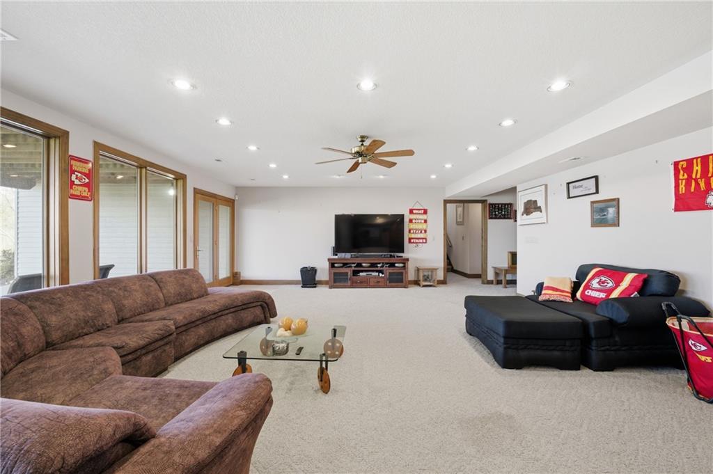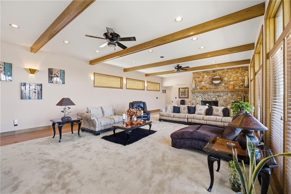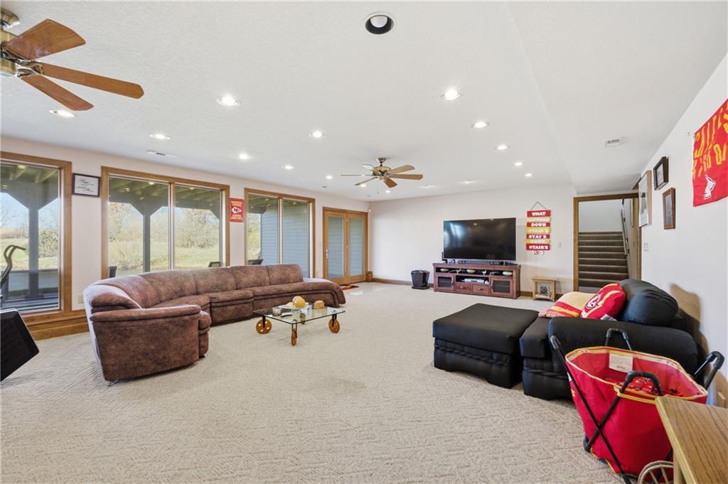 RARE Opportunity to own 115.43 PRIVATE ACRES of land, a Beautiful PRIVATE POND, "AND" a one-of-a-kind, PRIVATELY Owned Luxury Home in Odessa MO (located 20 mins from Blue Springs, MO). This Custom built 4,294 sq ft masterpiece, is truly something special! This home offers 4 bedrooms, 3.5 bathroom, finished basement with a walk-out, and a double sided 3 car garage. Primary bedroom is located on the main level and includes, 2 walk-in closets, double vanity, jetted tub and walk-in shower. Finished walk-out basement offers 3 bedroom, 1 full bath (with shower/tub combo), office, non-conforming room, and large utility/laundry room. Basement walks out to large patio and private pond. Double-sided 3 car garage, is very spacious, has a workshop and full bathroom with a shower in the garage. Kitchen has an open concept, flowing into the formal dining room. Formal living room offers great lighting, a fireplace and a beautiful view of the deck/pond. Hurry in today to tour this beautiful masterpiece that will not last long! Selling *As Is*. This is not a house you simply walk through — it’s a home you feel. A living work of art shaped by vision, precision, and a reverence for beauty that never demands attention — only presence. Zoning: AG -Agricultural District. Acres: 115.43. Private pond, Covered porch, Multiple Decks, Large patio.