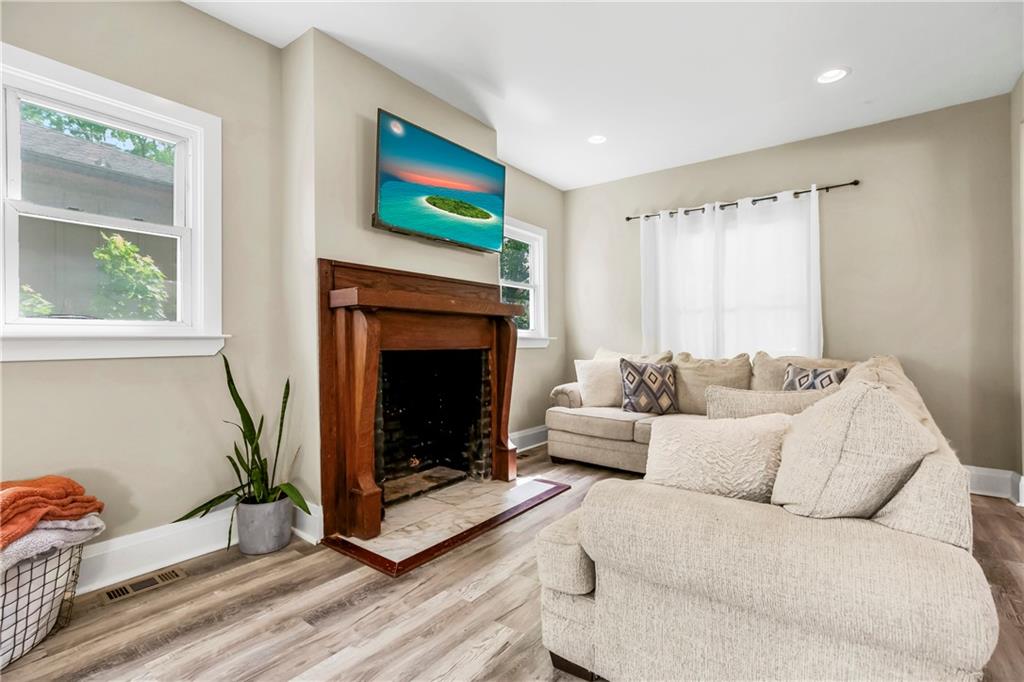 Charming 2 story home! Relax on the covered porch- an ideal spot to sip your favorite drink. The main level features vinyl plank flooring and offers spacious living and dining areas. The kitchen boasts granite countertops, crisp white cabinetry, stainless steel appliances and a pantry. BONUS: All appliances are included! A convenient half bath is located just off the kitchen. Upstairs, you'll find 3 generously sized bedrooms and a full bathroom. The home includes a full basement with interior access. Close to highways, shopping and dining. *PRICED WELL BELOW COUNTY APPRAISAL!