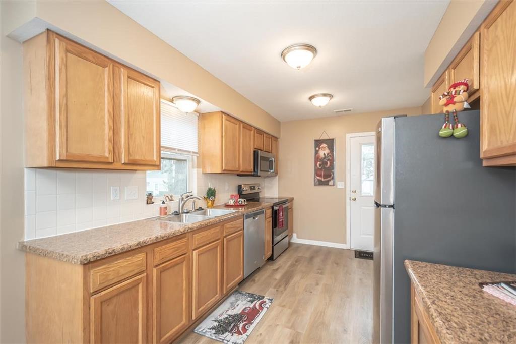 Add this home to your holiday shopping list!! This twelve year old, all one-level, all electric home is move-in ready! Your future home comes with a single detached garage with concrete floor and plenty of built-in storage. Close to downtown! Enjoy open concept kitchen, living and dining rooms, three bedrooms and two full bathrooms. The primary bedroom includes a walk-in closet and en suite bathroom with shower over tub. Recent updates include a new kitchen sink, all new interior paint, new luxury vinyl plank flooring, new toilets, and a newer LG washer and dryer. All appliances stay. Both the home and garage have concrete slab foundations and maintenance free siding. Open House Sunday, November 30th 1:00 - 3:00. (Seller is a licensed agent in Kansas.)
