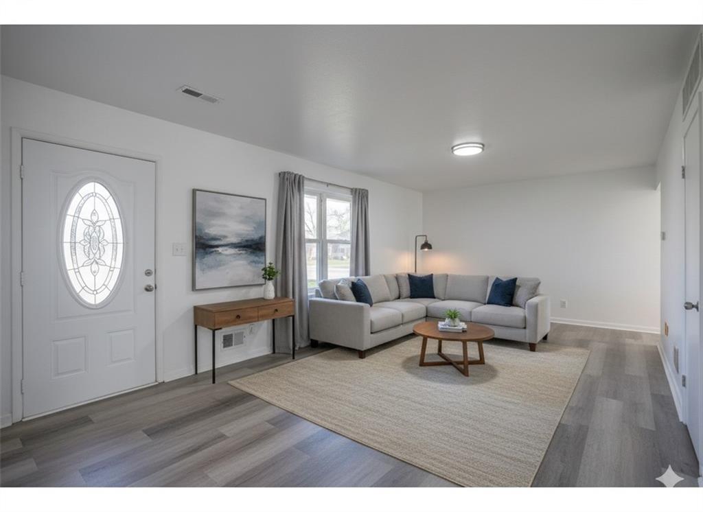 Don't miss this beautifully updated 3 bedroom, 1 ½ bath ranch in South Kansas City! Step inside to a spacious living room featuring low-maintenance luxury vinyl plank flooring that extends throughout the entire home. The heart of the home is the large, updated eat-in kitchen, boasting granite countertops, stainless steel appliances, and ample space for a dining area. Enjoy easy access to the large backyard, perfect for pets, kids, and entertaining! The primary bedroom offers a private convenience with its own updated half-bath, complete with a ceramic tile floor and a vanity featuring a granite countertop. Two additional bedrooms provide flexibility for family or a home office. For ultimate convenience, the laundry facilities are located on the main level. NEW ROOF so no worries for the new homeowner. This home is ready for you!