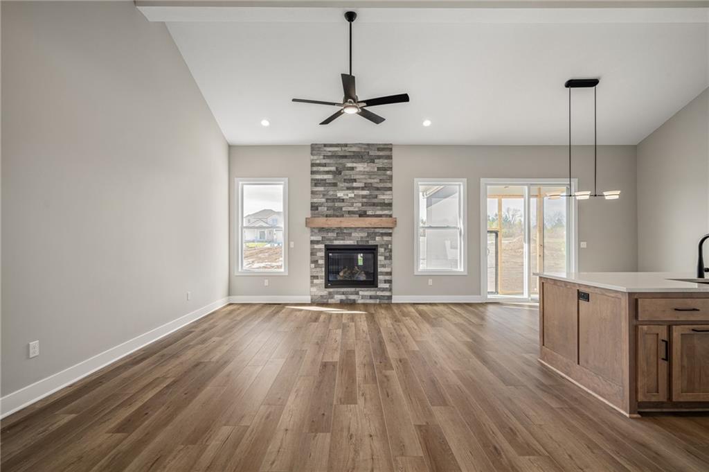 The Paige, a perfectly right-sized ranch by Classic Homes featuring open and airy main-level living. The Primary Suite offers a double vanity, walk-in shower, and spacious walk-in closet. On the opposite side of the home, you’ll find two secondary bedrooms and a full bath with shower-over-tub. The lower level provides additional living space with a second family/rec room, a fourth bedroom, a third full bath, and two large unfinished storage areas — ideal for future expansion. **HOME IS UNDER CONSTRUCTION. Photos are of a similar home. Taxes are estimated.** Located in The Timbers at Clear Creek, a vibrant community with a neighborhood pool, nearby parks, walking trails, and part of the highly regarded De Soto School District. Easy access to K-7 and K-10.