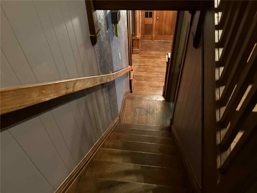 Large 2 story home located on a half a city block in a small town. The home has so much potential: dining room with coffered ceilings, stained leaded glass swinging door to kitchen, plate rail. Large family room with fireplace. Sitting area off kitchen with patio doors out onto deck. Room which was a half bath which Sellers have started will need to be finished how you would like. Large sunroom on main floor, check out all the windows. Upstairs are 3 bedrooms and a full bath and a large landing area with pull downstairs to the attic. Basement is setup for the laundry and a possible full bath and lots of room for storage. The boiler system has had some work done to it and is close to being able to be used. Come enjoy the outdoor space: Large front porch and large back deck. There is a fenced in yard area and 3 car garage. The garage is plumbed so it would be easy to add water. Come fall in love with this fixer upper (it currently livable but needs some updating). Both fireplaces are gas.