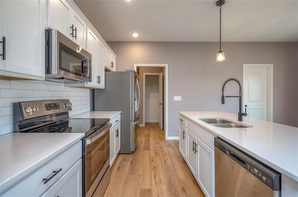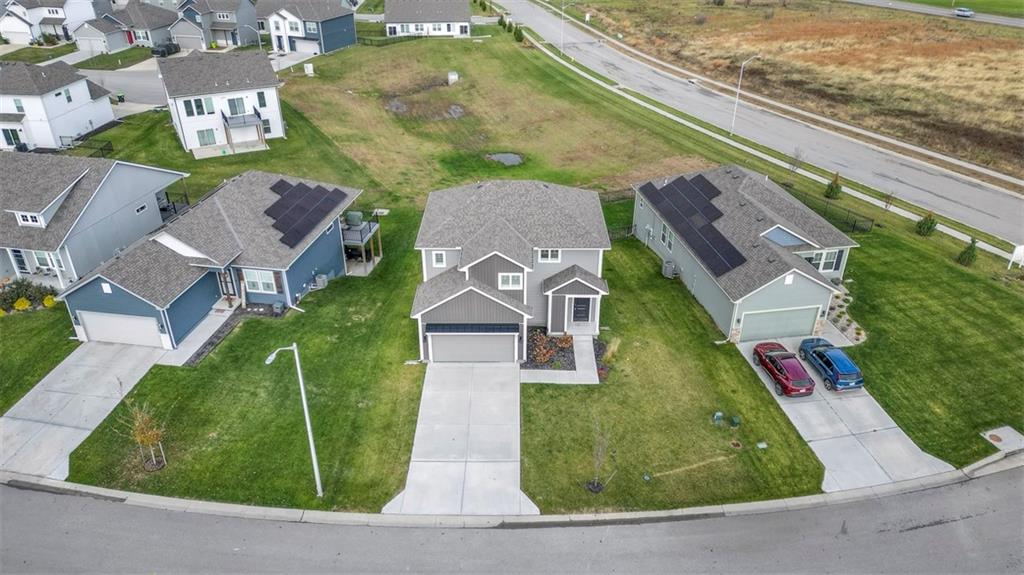 Greenwood / Lees Summit 3 bedroom 2 1/2 bath TWO STORY offers The open-concept main level and is designed for today’s lifestyle. A seamless flow between the living room, kitchen, and dining spaces makes it perfect for both everyday living and entertaining. Upstairs you’ll find three spacious bedrooms, a central laundry room, and a primary suite that feels like a retreat with spacious walk-in closet, private bath, and the space you need to unwind at the end of the day. The unfinished basement comes with two full sized egress window exits and is stubbed for a bathroom and ready for your personal use. A nice above ground North facing deck off the kitchen for morning coffee or evening refreshment opens to a green space ( Neighborhood retention lake ) behind the home that cannot be developed. Enjoy peaceful mornings, quiet evenings, and a sense of space vs a neighbors back yard. This two story is in a vibrant community with a pool, neighborhood events, and highly rated Lee’s Summit schools, this home offers both connection and convenience. Quick highway access to highway 7 and 50 highway makes commuting simple, and custom $2,000 window treatments, towel hangers are already installed, saving you time and expense. Fridge is also included with the house. This home offers style, function, and room to grow!