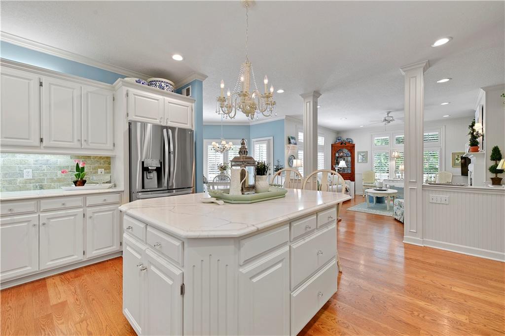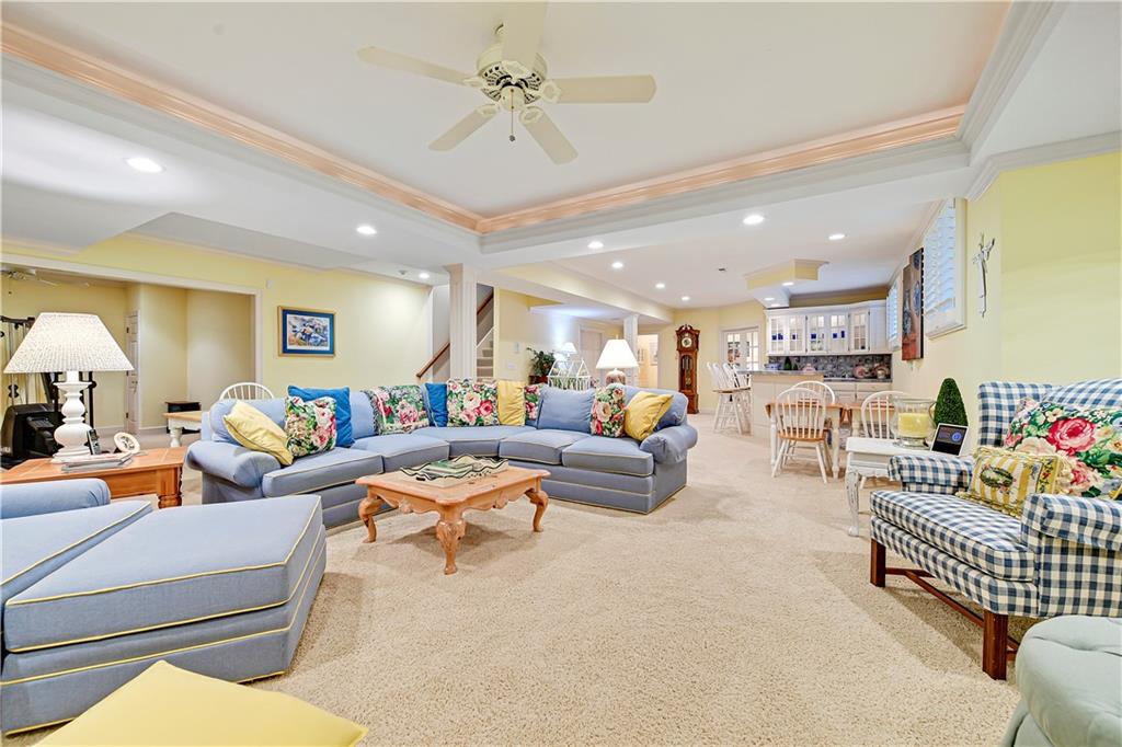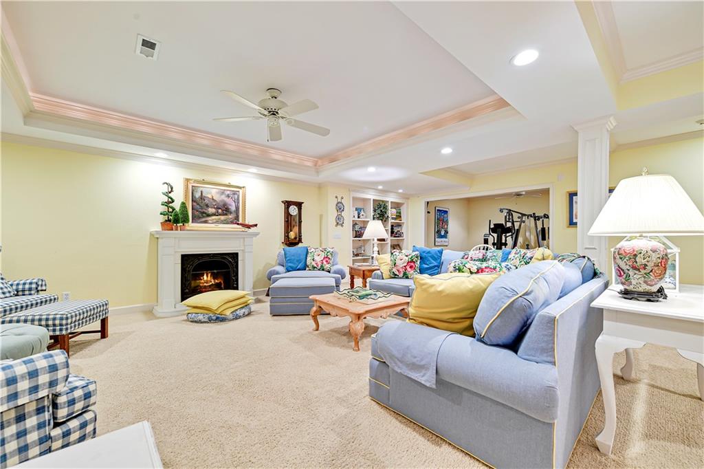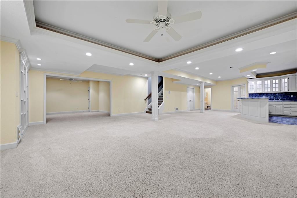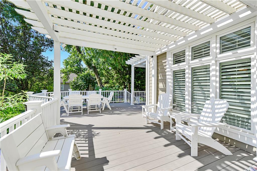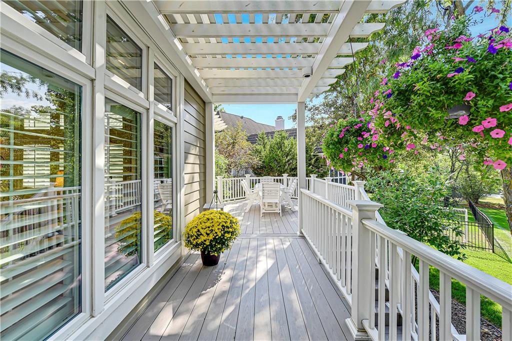 Nestled on a wooded cul-de-sac lot in the highly sought-after Cedar Creek community, this stunning 1.5-story retreat offers 5 bedrooms, 3 full baths, and 2 half baths—delivering the ultimate golf course lifestyle. The soaring 16-foot living room welcomes you with a grand stone fireplace, flanked by French doors that open to a cozy four-seasons room—an ideal spot for morning coffee while you watch deer and other wildlife wander by. The gourmet kitchen is a chef’s dream, featuring a spacious island, premium appliances, and a reverse osmosis water filtration system. Gather in the warm hearth room with its second fireplace and serene backyard views, or enjoy the charming breakfast nook that leads out to a maintenance-free deck. Head down the stairs to the lower patio and take a peaceful stroll around the manicured grounds—the golf course is just steps away. Back on the main floor, the primary suite offers a spa-like bath and a custom walk-in closet with convenient washer/dryer hookups. Upstairs, pristine new carpet guides you to three generously sized bedrooms, each with a walk-in closet and access to the versatile loft. Space, storage, and comfort abound. Complete your tour in the finished daylight lower level, designed for entertaining with a spacious rec room, full bar, workout area, and a private fifth bedroom. This home has been maintained with exceptional care—prepare to be impressed. Living in Cedar Creek means enjoying world-class amenities, including pools, a clubhouse, scenic trails, a 65-acre lake, and indoor courts for basketball, volleyball, and pickleball. Plus, you’ll have the opportunity to join one of the Midwest’s finest private golf clubs. Don’t miss this rare opportunity to own a remarkable home bordering one of Kansas City’s most picturesque golf courses.
