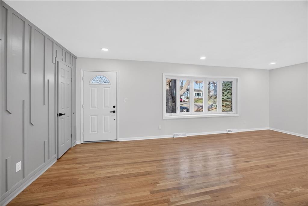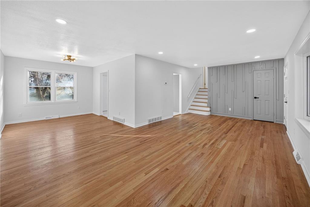 Welcome home to this beautifully updated 3-bedroom, 2.5-bath split-level located in the highly sought-after Nall Hills subdivision. Set on a spacious lot, this home combines modern updates with an unbeatable central Overland Park location near top-rated schools, shopping, dining, and quick highway access. Inside, you’ll find hardwood floors, fresh interior paint, and a bright, inviting living room highlighted by large bay windows and a striking accent wall. The renovated kitchen features stainless steel appliances, quartz countertops, abundant cabinet space, and a functional layout ideal for everyday living and entertaining. The remodeled bathrooms showcase designer tile and contemporary finishes, adding to the home’s move-in-ready appeal. The finished lower level offers additional living space with new LVP flooring and a convenient half bath—perfect for a family room, home office, or flex space. Major updates include a new HVAC system, a new roof, fresh exterior paint, and a two-car garage, providing peace of mind for years to come. This home delivers comfort, style, and location in one exceptional package.