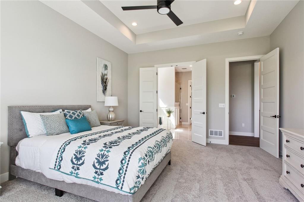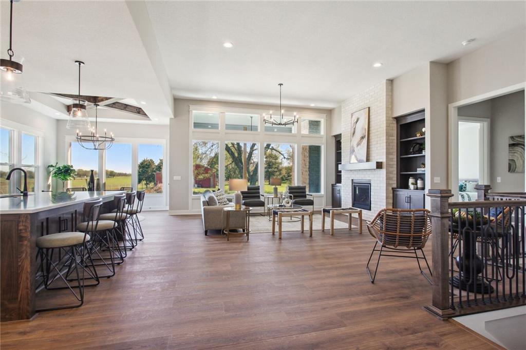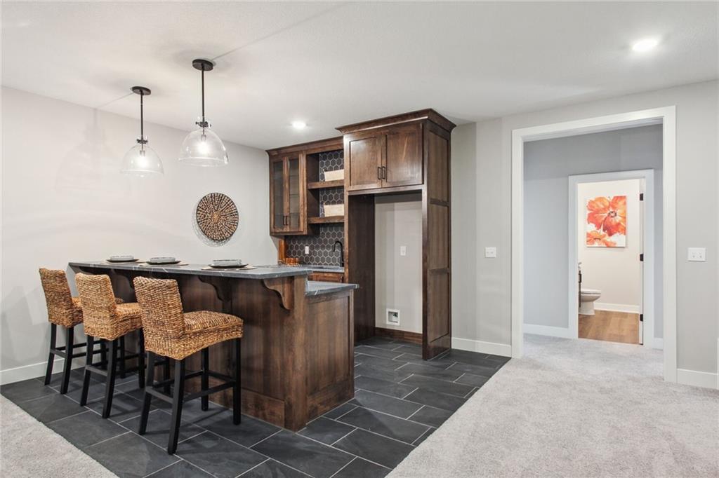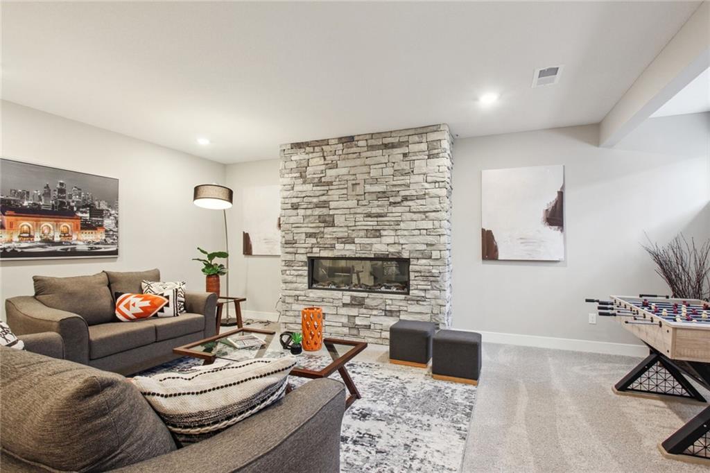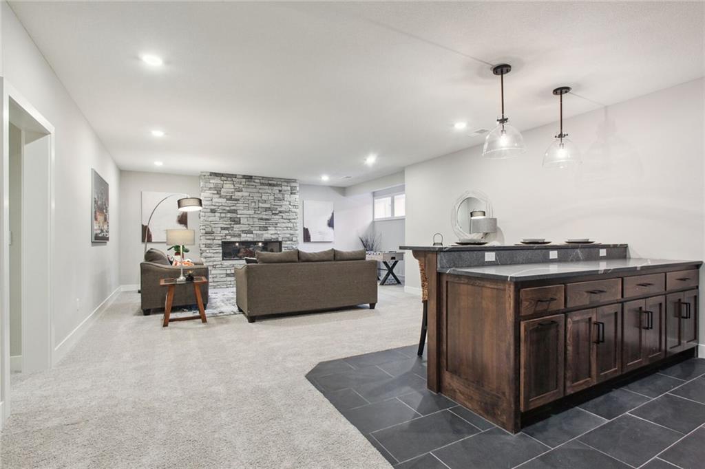 UNDER CONSTRUCTION with a completion date of May/June 2026. Introducing the popular Windsor reverse-ranch by Inspired Homes! This fantastic Reverse 1.5 Story now boasts over 3,500 SQFT and is the spacious reverse-ranch that you have been looking for! Upon entering the home, you will be immediately impressed by the wide grand entry, leading into a spacious open concept living room and kitchen with 12 ft ceilings and 8' doors throughout the main level. The great room features wall-to-wall windows, a stone stack fireplace with paired built-in bookcases, while the kitchen is highlighted by a 9'x5' island, built-in GE appliances, high-end quartz countertops, custom soft-closed cabinetry, and a huge pantry with hard-surface, custom shelving. Also on the main level is the giant primary bedroom with a luxurious bathroom, complete with a soaker tub and a spacious dual-headed shower. Directly adjacent is a large walk-in closet with additional pull-down bars and the laundry room with an upgraded sink. In the basement, enjoy a spacious rec area with an additional electric fireplace and a full wet bar, as well as three spare bedrooms and two full baths, creating the perfect environment for family or guests to have their own space. Inspired Homes also includes extra deep garages, 8’ garage & front doors, irrigation systems, garage openers, low-e Pella windows & doors, custom wood cabinetry throughout, tray ceilings, stylish accent walls & ceiling trim, and so much more! In addition, the community offers a premier amenities package, including a zero-entry pool and sun cabanas, a large "tot-lot" playground and gaga ball pit, pickle ball courts, basketball and volleyball courts, local walking trails, and expanses of green space to enjoy. Pool and playground are in progress and will be open Spring 2026!