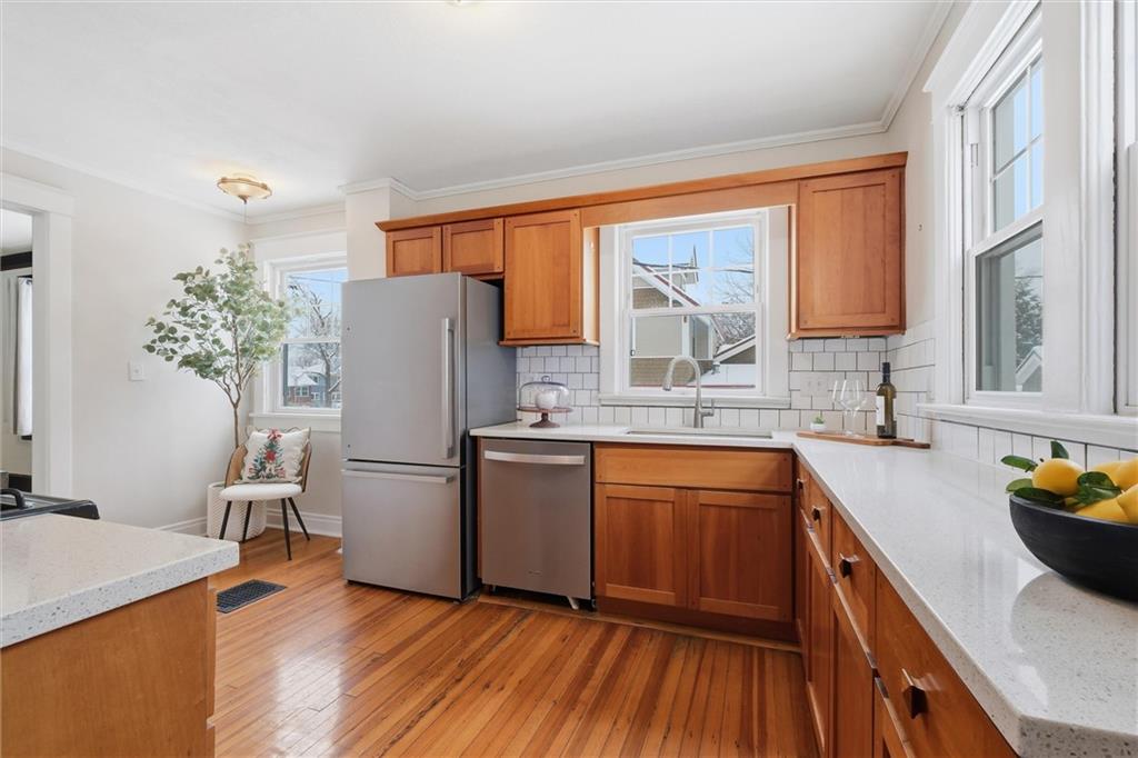 Step onto the charming front porch of this timeless three-story home and instantly feel its character. Thoughtful Craftsman details, original moldings, rich woodwork, and vintage hardware create warmth at every turn while tasteful updates blend modern comfort with classic style. The inviting living room centers around a gorgeous stone fireplace, perfect for slow mornings or evenings with friends, and flows seamlessly into the formal dining room for easy entertaining. The updated kitchen features quartz countertops, a gas range, and newer stainless steel appliances. Upstairs, retreat to the serene primary suite with two walk-in closets and a beautifully renovated bath complete with double vanity, marble counters, tile floor, and a spacious walk-in shower. Additional bedrooms offer versatility for guests, office, or play space. The partially finished lower level is ready for your personal touch and provides valuable extra living or storage space. Location is everything, and this one is unmatched. Just blocks from Crestwood Shops, South Plaza, and the streetcar extension for quick access to the Plaza, UMKC, and downtown. Spend your weekends strolling to Loose Park or exploring nearby trails surrounded by beautiful scenery. This home sits at the heart of Kansas City’s most beloved neighborhoods with incredible walkability. Charm, updates, and an A+ location. Make this endearing home yours.