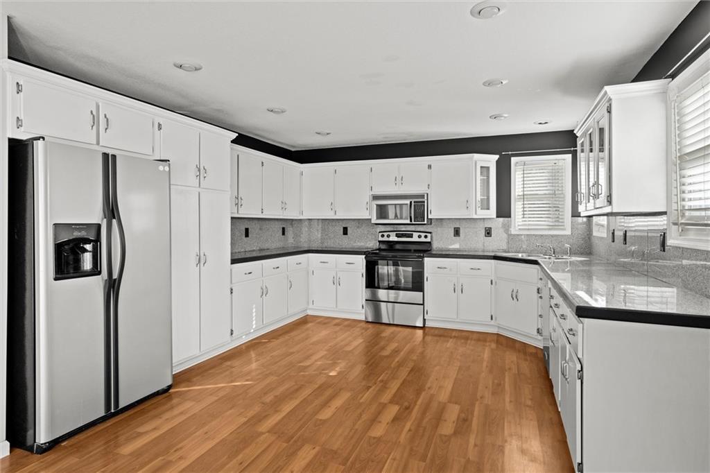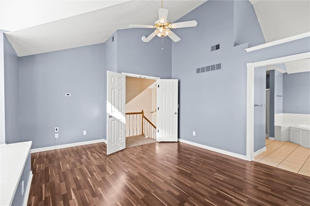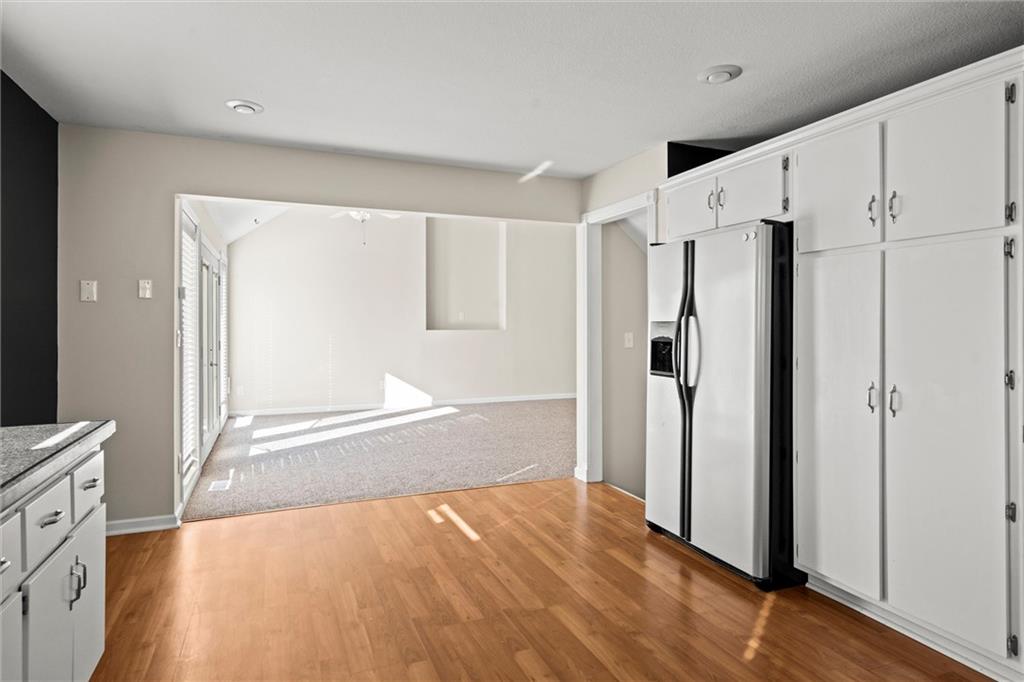 Beautifully maintained 1.5-story home nestled on a cul-de-sac in the desirable Raintree Lake community! Step into a bright, airy great room with soaring ceilings and ceiling fans, seamlessly connecting to an open-concept eat-in kitchen featuring stainless steel appliances and granite countertops. The main level offers two bedrooms, a full bath, and convenient laundry. Upstairs, enjoy a private master suite highlighted by vaulted ceilings, wood floors, a spacious walk-in closet, and an elegant master bath with double vanity, whirlpool tub, and separate shower. The finished basement is perfect for entertaining, with a fourth bedroom featuring a built-in desk and flexible space stubbed for a future bathroom, plus ample storage. Enjoy outdoor living via patio doors to a 20x20 deck overlooking a large, fenced backyard. Rare three-car tandem garage includes backyard access. Located within the Lee’s Summit School District and offering Raintree Lake’s resort-style amenities—trails, parks, pools, and more. This move-in-ready gem combines style, function, and location—don’t miss your chance to call it home!