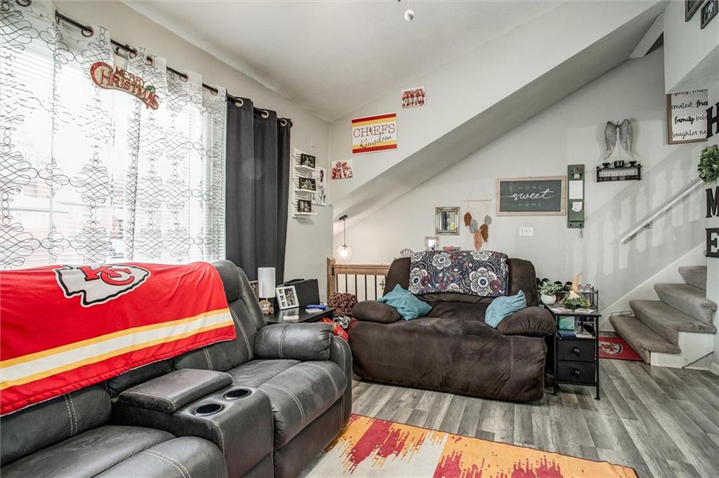 Welcome home to this spacious 3-bedroom, 2.5-bath townhouse in the desirable Rock Ridge community. With comfortable living space and a 1.5-story layout, this end-unit offers the perfect blend of convenience, privacy, and low-maintenance living. Step inside to a light-filled great room featuring vaulted ceilings, a cozy fireplace, and easy flow into the dining area—ideal for everyday living or hosting friends. The main-level primary suite provides true comfort with its own private bath and direct outdoor access. Upstairs, you’ll find two additional bedrooms and a full bath, giving everyone their own space. The kitchen offers ample storage and overlooks the tree-lined backyard, and the large deck is the perfect spot for morning coffee or evening unwinding. A 2-car attached garage, main-level laundry, and views of the surrounding trees add to the everyday ease of this home. Tucked in a convenient location near 435, the Legends, shops, restaurants, and more, this townhome offers both tranquility and accessibility. A well-maintained community and a layout that lives like a single-family home—this one is ready for its next chapter. Come take a look and see why this Rock Ridge gem stands out!