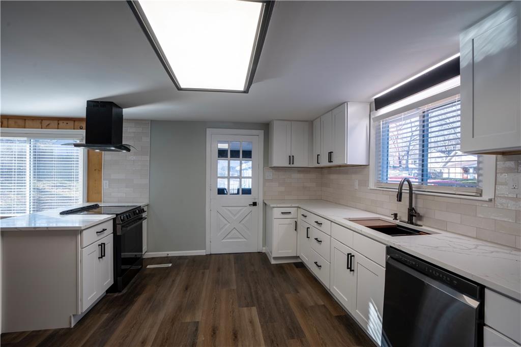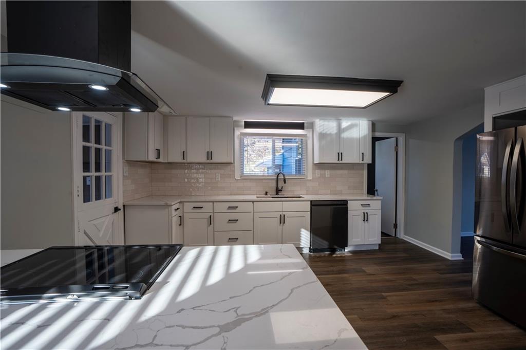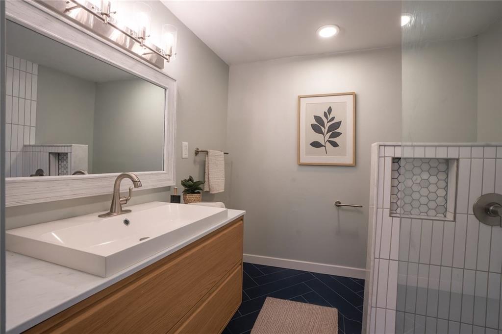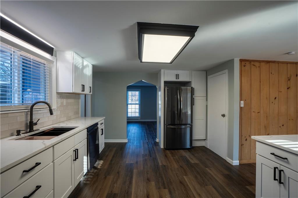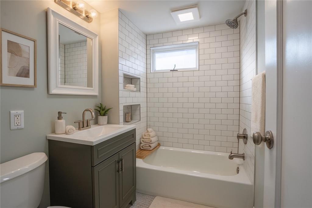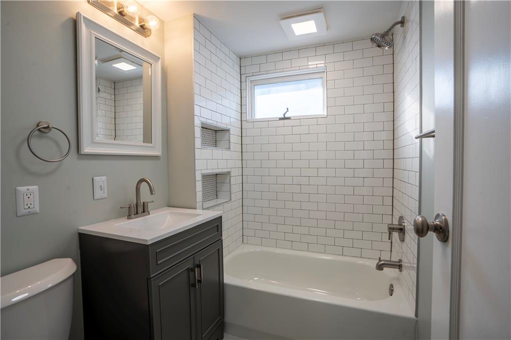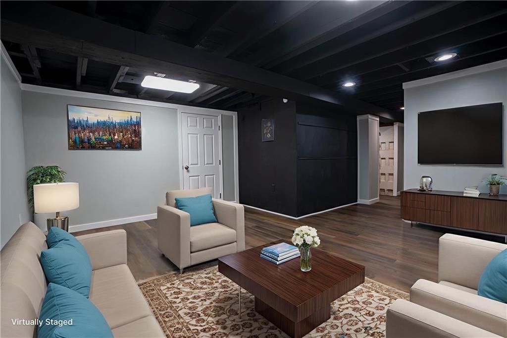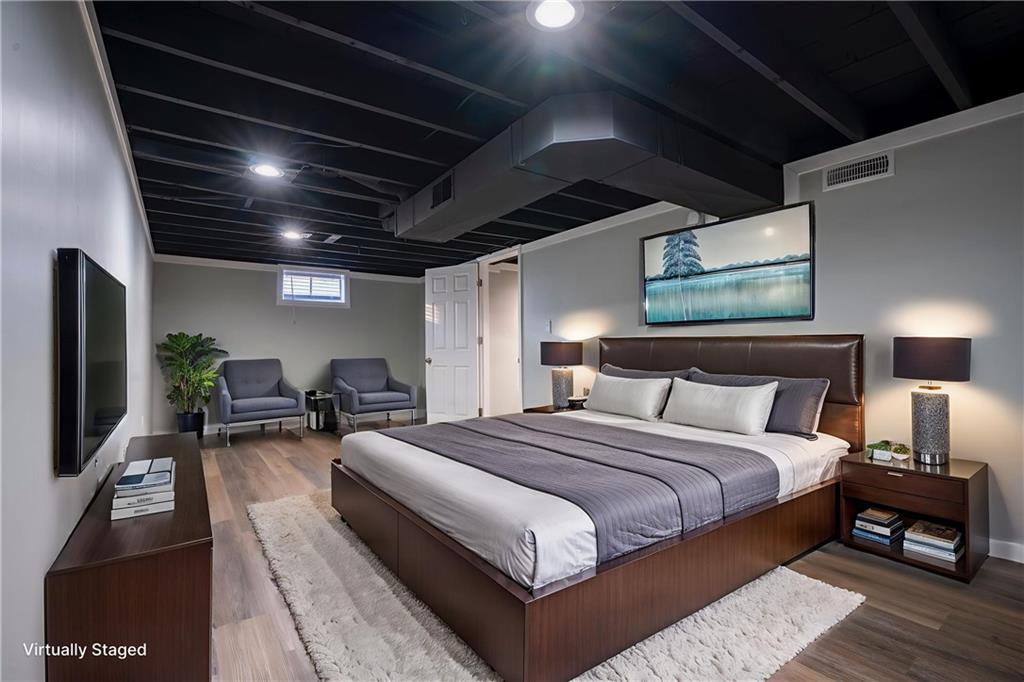 Completely renovated home with approx. 2,800 sq. ft. of finished space. Updates include new LVP, carpet, lighting, and paint. Kitchen features quartz countertops, large sink, soft-close cabinets, subway tile, LED lighting, and black stainless appliances. Main level includes living room with oversized window, office, primary suite with walk-in closet, updated baths, and additional bedroom. Finished attic offers built-in beds, den space, mini-split, and storage. Finished basement includes full bath, closets, exterior door, and two non-conforming rooms for flexible use.