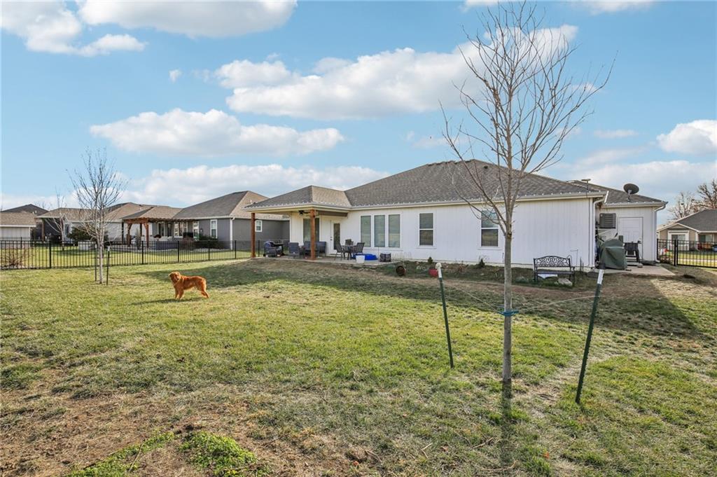 Just listed! Freshly painted interior since pictures! This stunning Drippe-built no step ranch offers effortless living. Enjoy a spacious 3-car garage, a fenced in backyard, and an extended patio perfect for outdoor entertaining. Inside, the home features upgraded kitchen appliances that stay, thoughtful design, and added attic storage for all your extras. Located on a cul-de-sac directly across from Sunflower Elementary, this property offers convenience with quick access to highways, parks, shopping, and more. A beautifully maintained home. Don’t miss your chance!