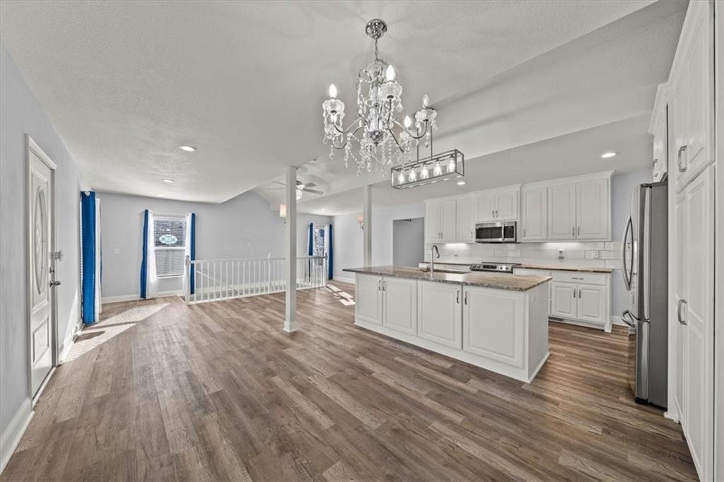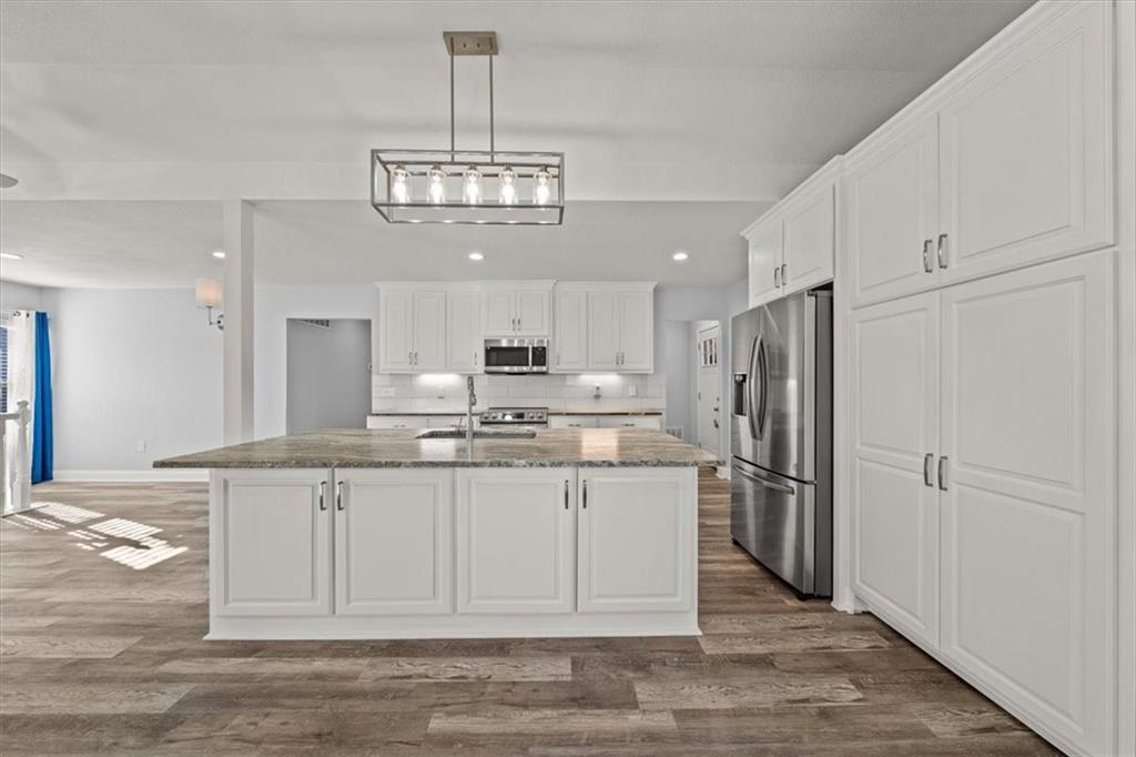 Beautiful ranch home in Spring Hill! Located on a quiet street, this well-kept home features a spacious backyard and a gorgeous patio perfect for relaxing and taking in the views. Inside, you’ll find 3 bedrooms and 2 bathrooms, including a generous primary suite with a large, tiled shower, large bathtub and dual sinks. The second bathroom also features a stylish tiled shower. Enjoy the welcoming covered front entry and a large two-car garage with plenty of storage space. The main living area offers a beautiful vinyl plank flooring that flows through the family room and kitchen. The kitchen is a standout—featuring abundant cabinet and pantry space, beautiful lighting, a large granite-topped island, and modern fixtures that elevate the entire space. There is easy access to the highway. The unfinished basement provides endless possibilities for future expansion or additional storage.