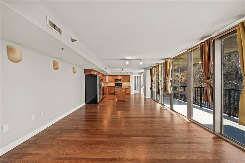Prime location and all the amenities you could want! This spacious 2 bedroom, 2 bath condo in The View offers a spacious open floor plan with newly refinished wood floors throughout the main living area and a private balcony. Enjoy ample natural light with windows along one entire side of the unit affording views of the city, pool, and Heart of America bridge from each bedroom and the living space. Bedrooms are on opposite sides of the unit for privacy and each has direct access to a bathroom and its own walk-in closet. The kitchen features dark stained cabinets, stainless appliances, granite counters and a spacious island. In-unit stackable laundry with washer and dryer included. This property includes one assigned covered garage space and a designated storage unit. The View provides an abundance of amenities including both indoor and saltwater pools and hot tubs, a fitness center, tennis/pickleball court, both indoor and outdoor basketball courts, a theatre room, indoor putting green, catering kitchen, dry sauna, and a secured entry with on-site concierge team and overnight security. All this within minutes of shopping, restaurants, bars/breweries, and entertainment in North Kansas City, Power and Light, River Market and more. Easy access to freeways/interstate.