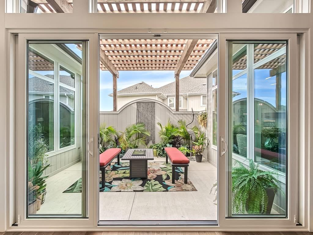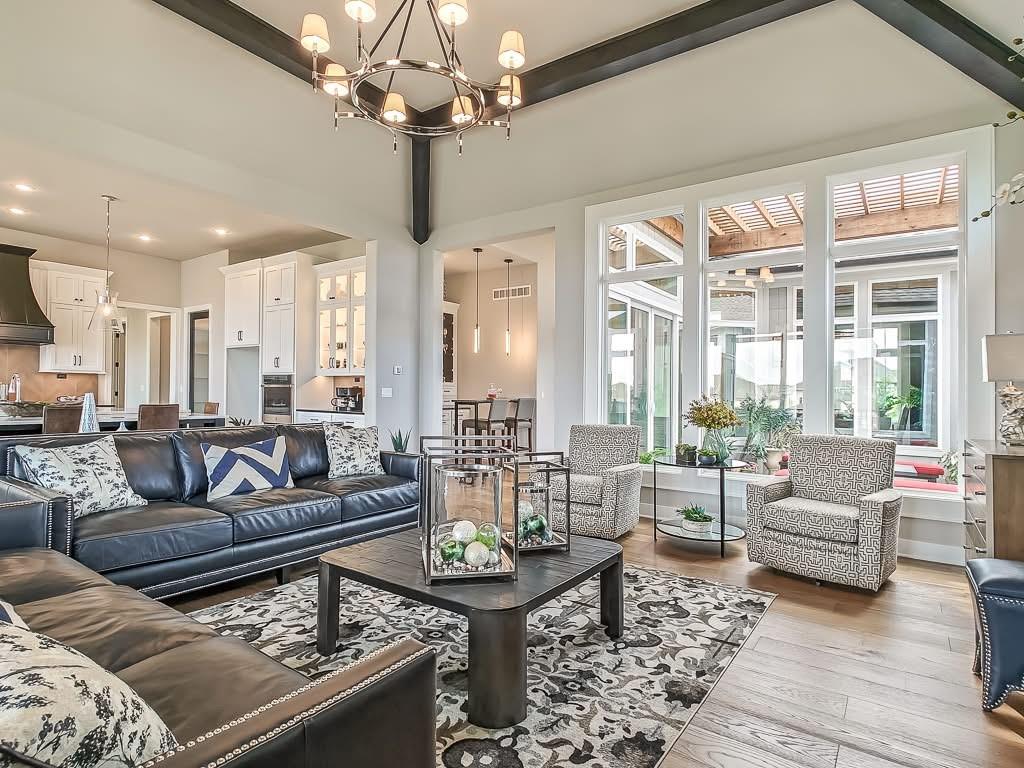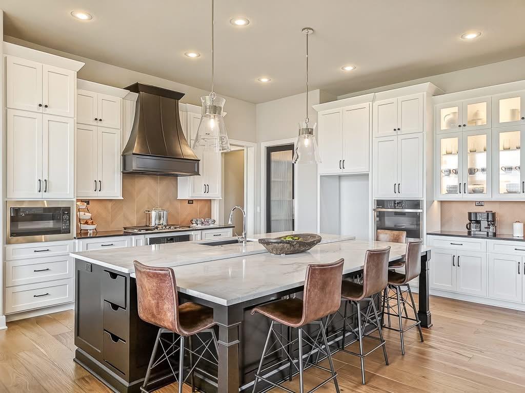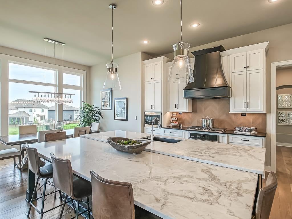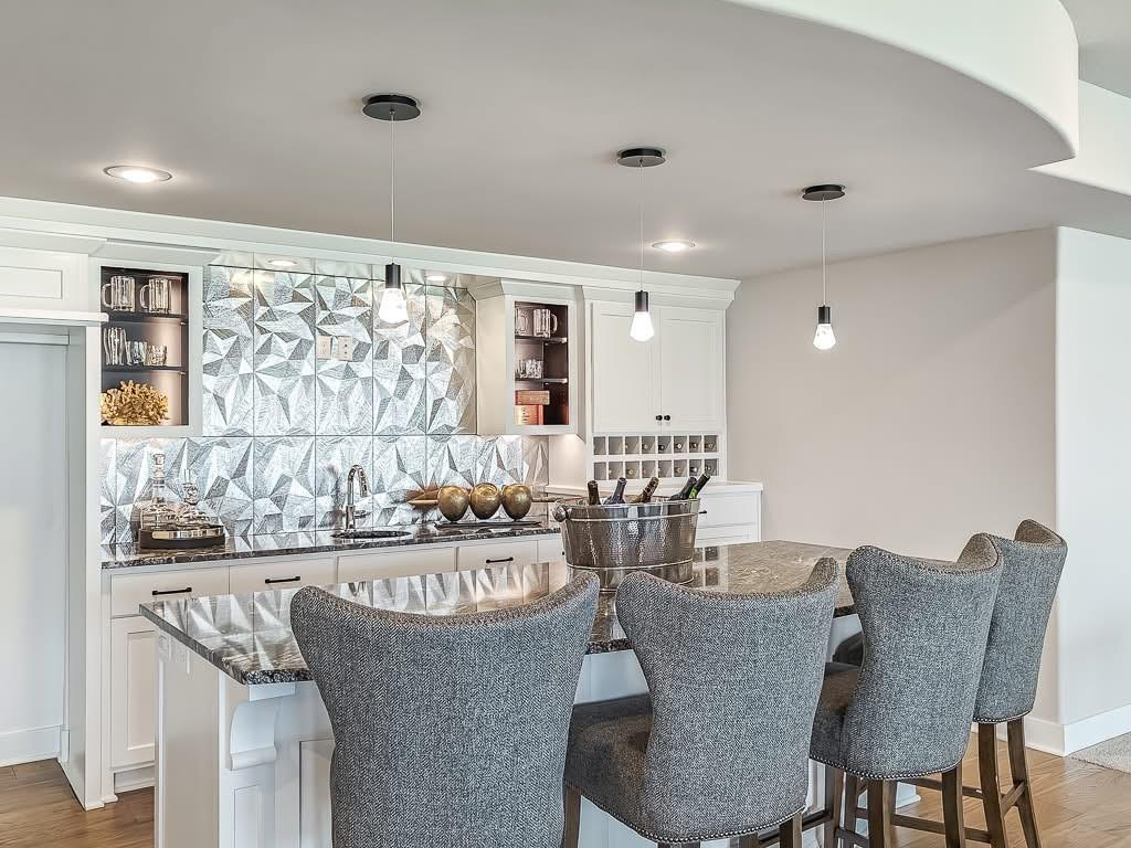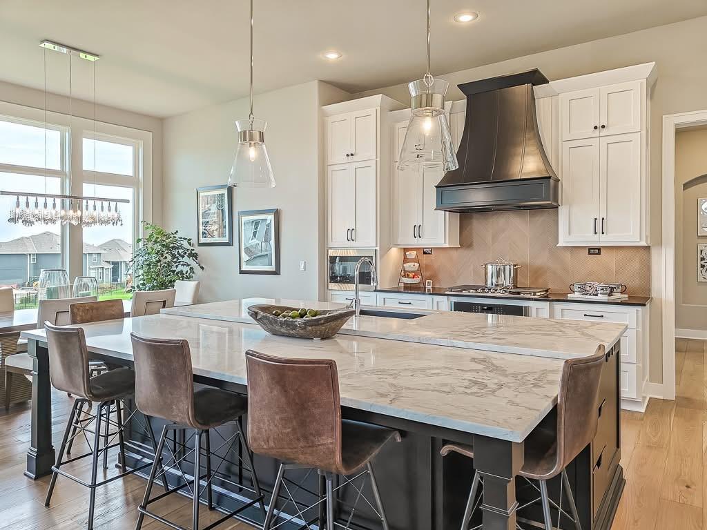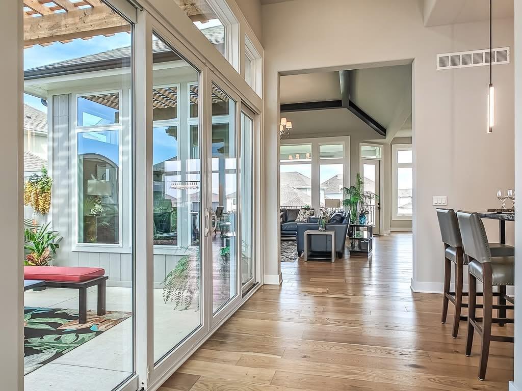 The Courtland Reverse by Don Julian Builders--UNDER CONSTRUCTION! THIS HOME IS NOT COMPLETED--the photos shown are from another Courtland MODEL plan that is completed. So much WOW! Fabulous plan with a terrific courtyard with converging doors off the entry--perfect for relaxing and enjo. ying nature! Useable, large First floor office/den views this indoor/outdoor space! Pub bar area across from the courtyard--enjoy entertaining-great places. FOUR car garage! Great room with vaults and beams--Large dining area with vaults and beams, too! Primary bedroom suite with vault and beams, light, extra-large shower, and laundry ROOM of the huge closet. Second bedroom on first floor w/private bath. Drop station with cubbies by back door. Large kitchen with massive (double slab) island and lots of space. Hidden, back stairs to Lower level: jumbo REC room, extra-sized wet bar; 1/2 bath. 2 additional, sizable bedrooms (each with their own bath and walk-in closet). SO much light! Enjoy Riss Lake amenities: including 3 pools, tennis courts with pickle ball lines, playground, splash pad, walking trails, 134-acre lake for fishing or boating, more!