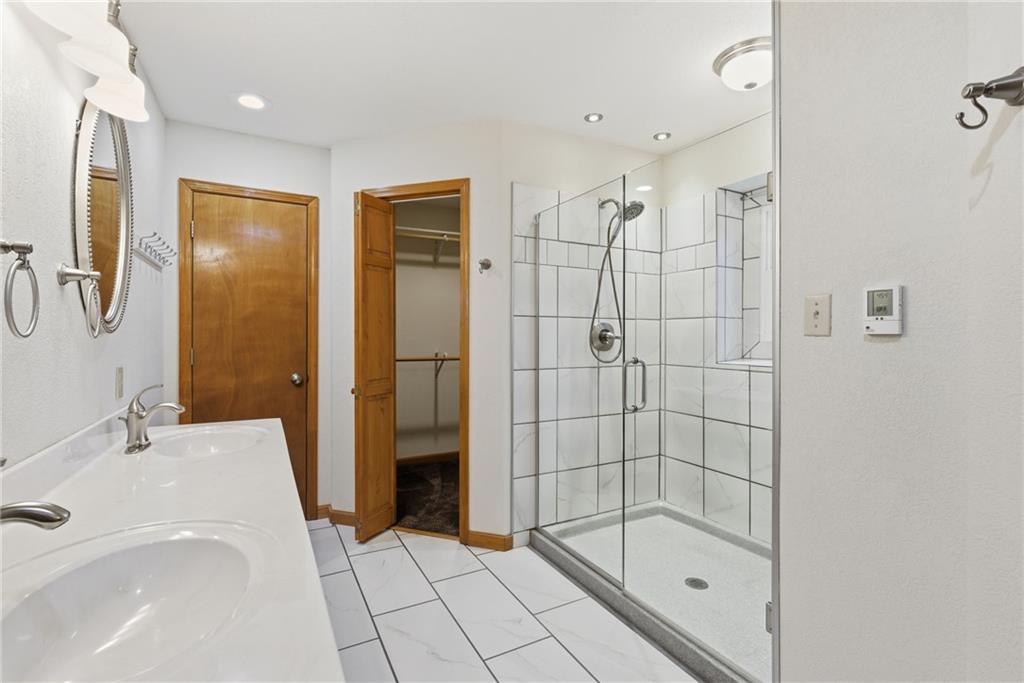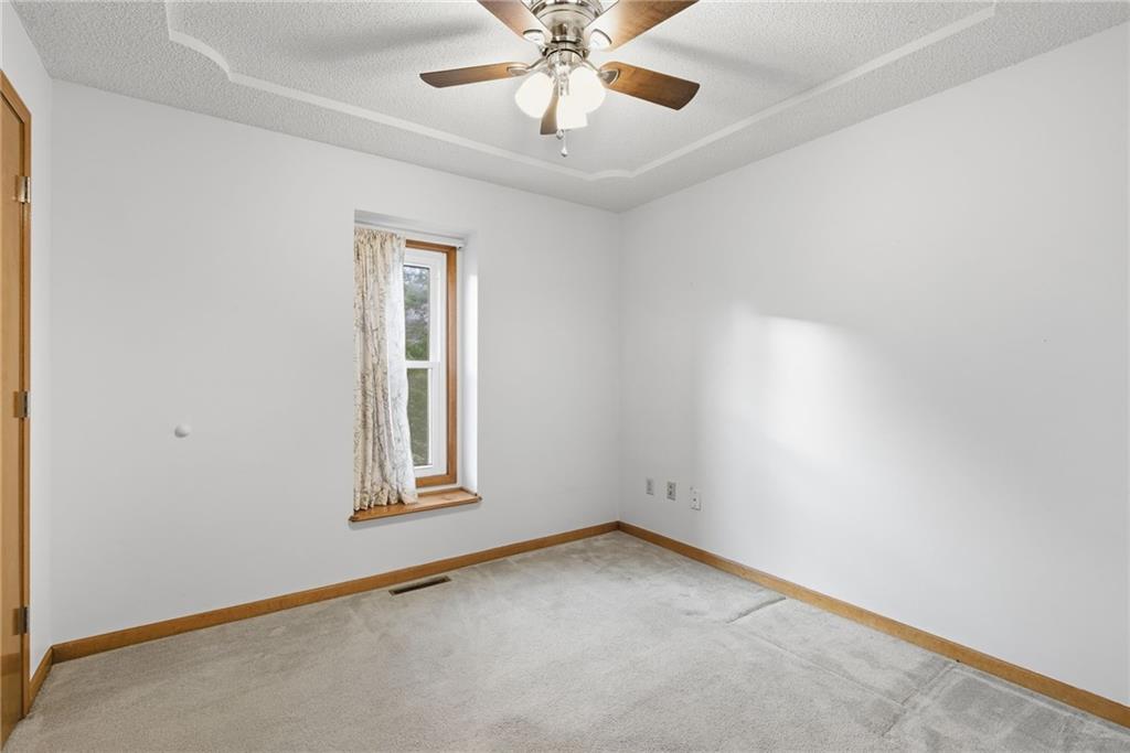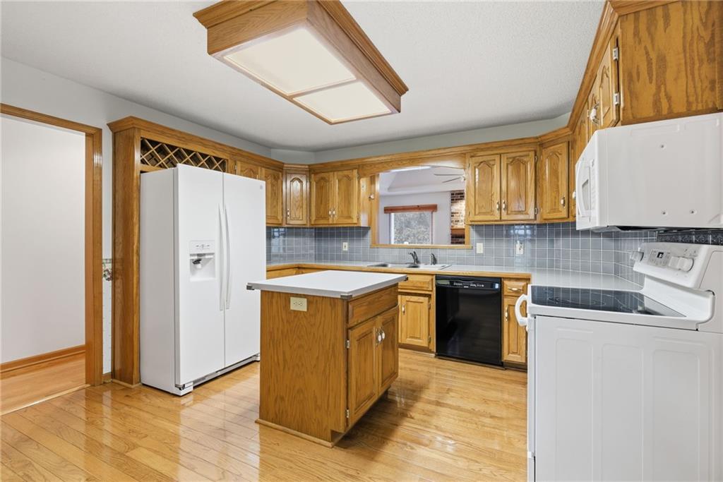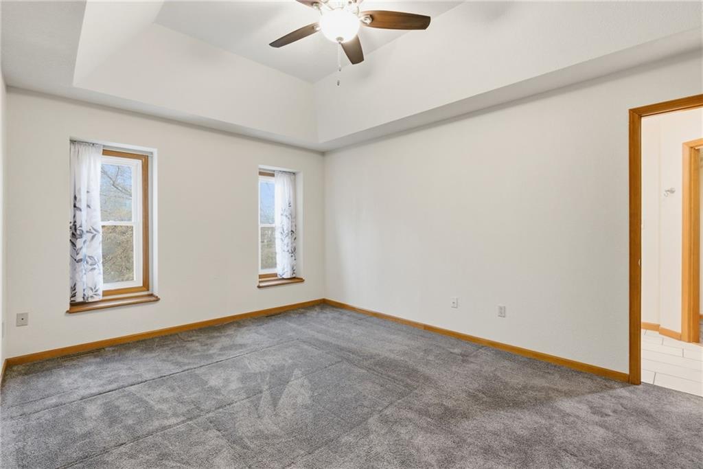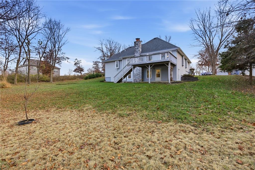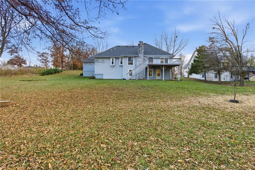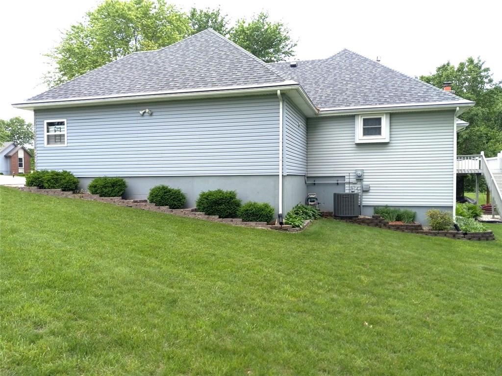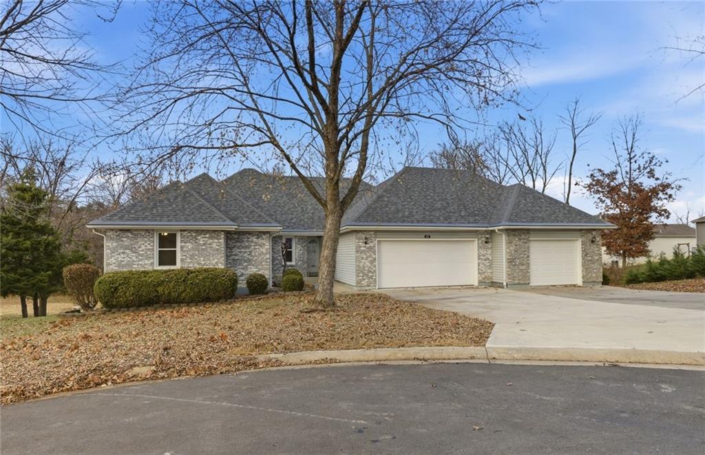 Welcome to 507 Larkin Court, a beautifully maintained 3,300 sq ft home on a quiet cul-de-sac in Warrensburg. This spacious property offers custom vaulted ceilings in six rooms, hardwood floors throughout the main living areas, and an airy, open layout with abundant natural light. Large windows in the living room overlook the expansive backyard and wooded tree line, creating a peaceful and private setting. The home features five conforming bedrooms plus one non-conforming bedroom, providing exceptional flexibility. The master suite is located on one side of the home for added privacy and includes two large walk-in closets and a remodeled ensuite with a large walk-in shower equipped with a built-in seat and convenient shelving. Additional bedrooms are located on the opposite side of the main level, with more sleeping or hobby space found in the finished walkout basement, which includes a conforming bedroom and an additional non-conforming bedroom or craft room. The lower level offers an open second living area, access to a covered patio and concrete pad, and a FEMA-designated tornado safe room in the corner of the basement. The home includes two brick fireplaces with ventless gas logs, a main-floor laundry room, and a water softener. Outside, you’ll enjoy a 20x20 deck with views of the spacious backyard, updated vinyl siding with a brick front, and a serene wooded backdrop frequented by deer. Major updates include a remodeled master suite (2013), a new furnace and AC (2017), remodeled entryway (2017), newer appliances (2019), new roof, gutters, and driveway (2020), fully replaced windows (2022), and a new hot water heater (2024). Additional storage can be found in the three-car garage, which has a partially decked attic above the larger bay for convenient walkable storage. This spacious corner-lot home with privacy, natural beauty, and thoughtful updates offers comfort, versatility, and room to grow in one of Warrensburg’s most desirable locations.