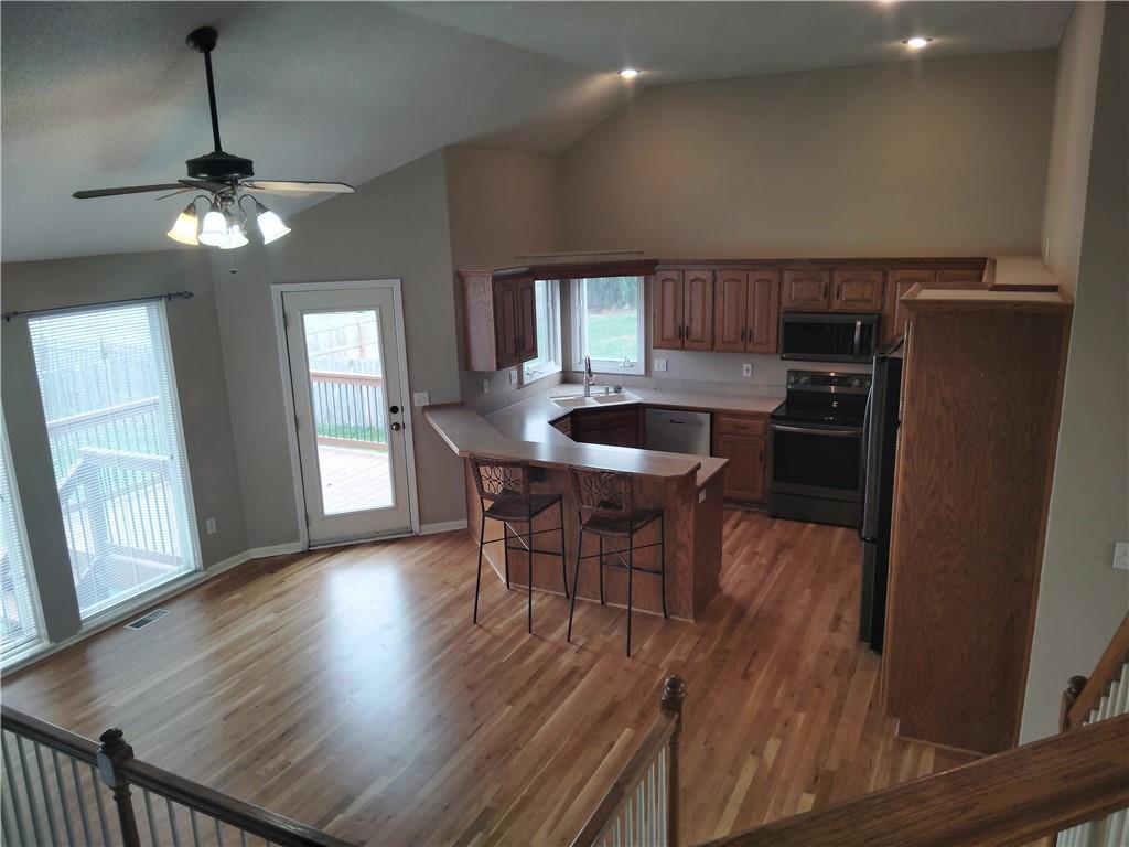 Freshly updated with new carpet and paint, this home is ready for you to add your personal style. The hardwood floors have been re sanded and stained to add to the warmth of the home. The main level offers a formal dining room, or office and an open flow makes it easy to stay connected with family and guests in the kitchen. Newer appliances stay with the home. The upper floor includes the primary bedroom. Enjoy your jetted tub and walk in closet and shower. Lower-level family room and fireplace also have a half bath and laundry room. The lower basement is finished into either another bedroom with a full bathroom or cozy tv room. Outside, the spacious backyard is fenced on 3 sides, a small patio and deck off of the kitchen. This family friendly floor plan is great for the person that needs space!