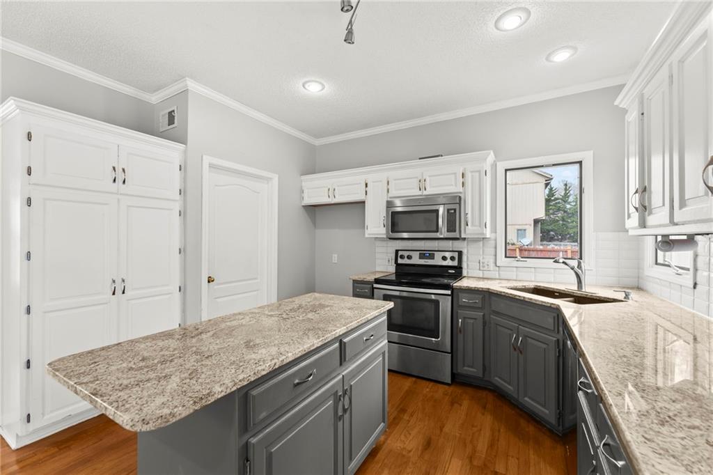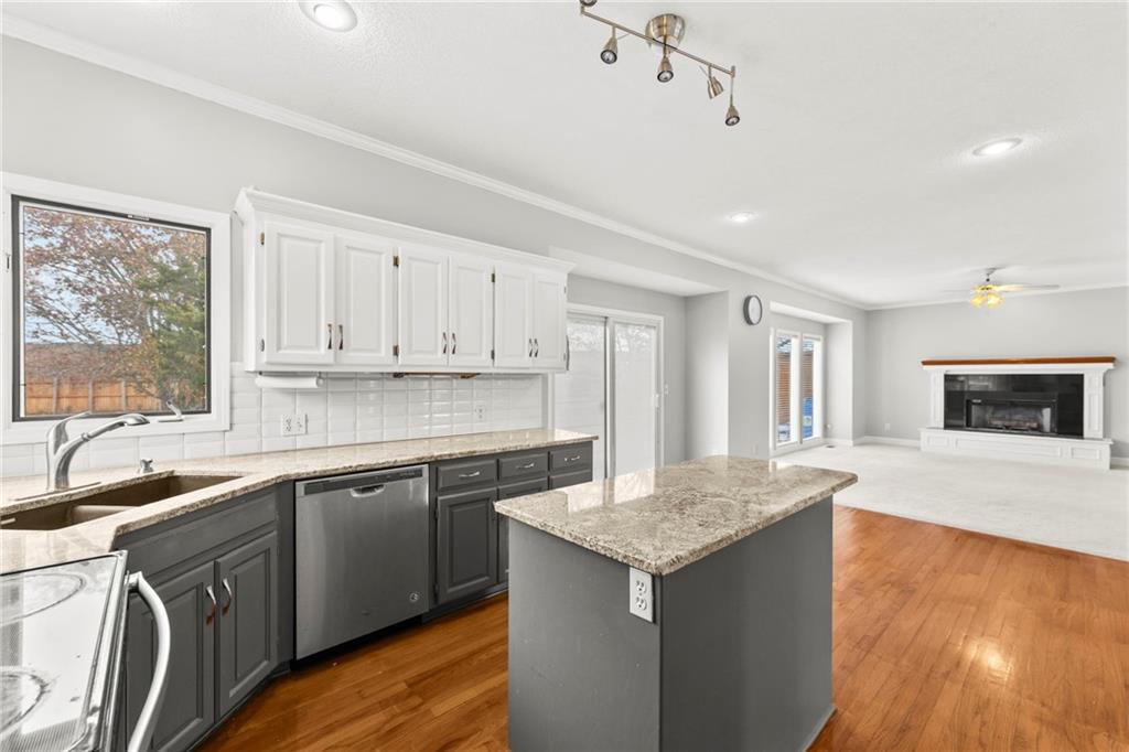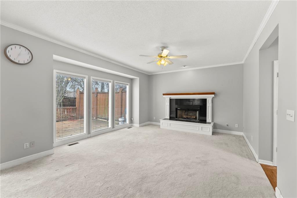 Home that has been freshened with updated paint, flooring and finished basement. Lovely Great room with fireplace that opens to the backyard with deck and gazebo type sitting area. Lots of trees and pond for koi fish. Formal living room would be great for a home office as well, formal dining room is perfect for the entertaining of guests. Large kitchen for food preparation with loads of cabinets and counter space. Eat in dining area as well that connects with great room. Basement is finished with another office and a non-conformin bedroom and another bath and family room.