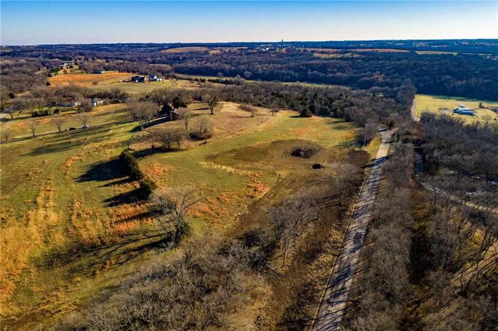 Horizon Ridge Estates Tract 6 is a standout corner tract with 4.54 acres at SE 10th Street and Stanley Road, offering both presence and practical access. Elevated ground and sloping topography make this an ideal site for a walkout basement, lower-level patio, or terraced outdoor spaces that take advantage of the natural grade. A row of trees along the road adds privacy and a green buffer from this lightly traveled, hard-surfaced intersection. The corner position allows for potential driveway access from either SE 10th or Stanley, giving you flexibility for garage placement and traffic flow. Located just off US Highway 40, you are minutes from Topeka, with quick access to I-70 and an easy drive toward Lawrence, yet the setting retains a peaceful, rural character near Tecumseh. Simple protective covenants are in place to maintain an attractive estate environment. With rural water meters and utilities available, Tract 6 is an exceptional opportunity for a signature home that really uses the land.
