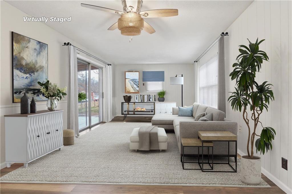 New Year- new exterior paint! Welcome home! The entire exterior just got a make over. Located in a beautiful treed neighborhood with new sidewalks plus parks near by, all this spacious updated home needs now, is a new owner! New flooring throughout most of the entire main level, as well as neutral colors throughout makes this home move in ready. Kitchen has been updated with painted cabinets, newer appliances, including a new kitchen sink and faucet. 2 living spaces on the main level PLUS open up the sliding glass door to a covered porch - Perfect for adding a cozy couch-comfy chairs- maybe a propane firepit and relaxing with friends, family or furr babies- or all of the above. Work from home? No problem- you will have ample space to make that happen. New A/C and newer furnace is definitely a bonus. Good size bedrooms with ceiling fans, remodeled bathrooms- and a finished area in the lower level for working out, hobbies, or play area. Home has good highway accessibility, shopping close by, NKC Hospital and all other everyday conveniences. Any thoughts of waiting on this home- DONT.