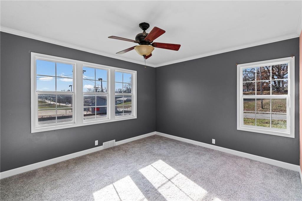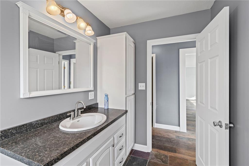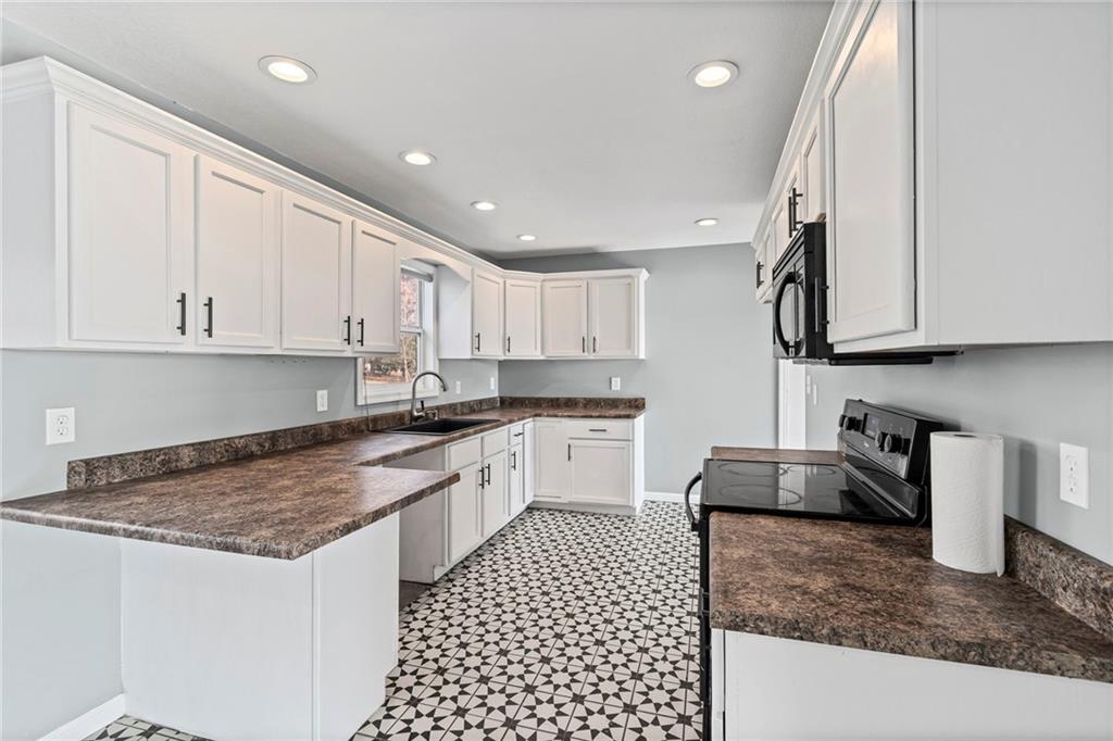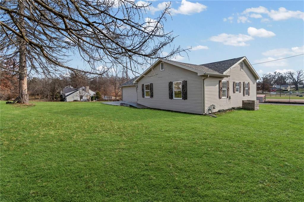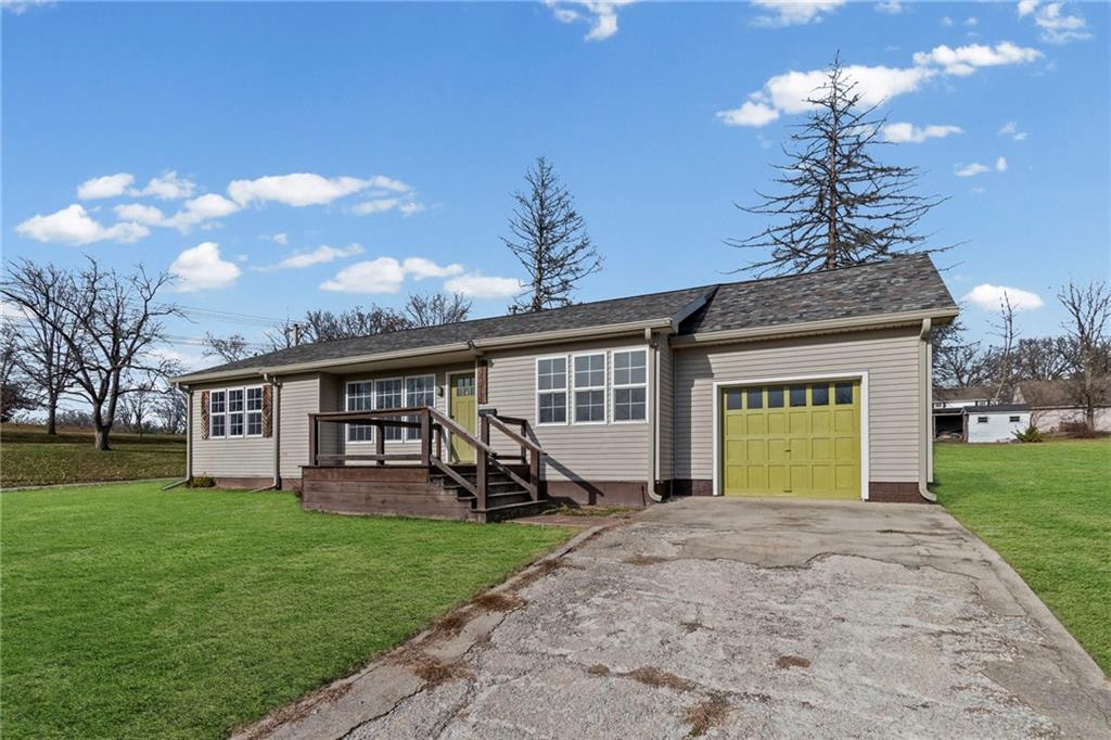 This nicely updated 3-bedroom ranch nestled in on a spacious corner lot is looking for its new owner! The bright and inviting floor plan offers functionality, perfect for everyday living. As you step into this home you will be greeted with a generous living room with newer flooring, custom stone fireplace, and lots of natural light let in by dual pane vinyl replacement windows throughout. The formal dining room gives you a place to host dinners with friends and family while the eat-in kitchen offers a bright and airy feel with modern white cabinets. The bathroom is outfitted with sleek and clean finishes. French doors lead you to the large concrete patio that overlooks the nearly 1-acre yard. Flooring allowance for 2 bedrooms to be considered upon receipt of acceptable offer.