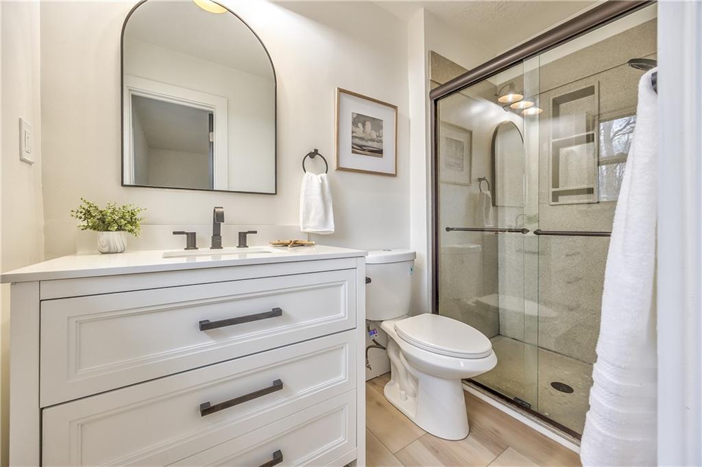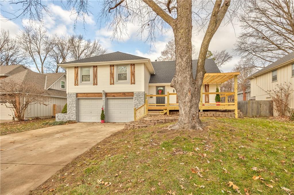 Beautifully renovated home with modern upgrades throughout. This fully updated home features fresh Alabaster interior paint with stylish black and natural wood accents. Enjoy an oversized front deck with pergola, perfect for morning coffee or relaxing outdoors. Inside, the home offers all new luxury vinyl plank flooring and plush carpet in two guest bedrooms. The kitchen has been completely refreshed with new stainless steel appliances, sanded and painted cabinets with updated hardware, a new kitchen island, and white granite countertops. Both bathrooms have been fully remodeled with new tile, vanities, and lighting. A custom mudroom with built-in bench welcomes you at the entrance. All bedrooms feature matching black ceiling fans, and the living room includes a striking Iron Ore accent wall. Outdoor living continues on the composite back deck with metal railing, providing durability and low maintenance. Brand new roof electrical box too! Move-in ready—come see this beautifully finished home today!