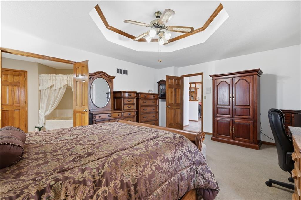 Set on 20± acres, this property is well-suited for equestrian use, livestock, or those seeking usable land with existing infrastructure. The horse barn includes electricity, multiple stalls, a tack room, and a wash station, providing a functional setup for daily use. The property is fully fenced for livestock and horses. In addition to the horse barn, there are three additional barns/outbuildings, offering flexibility for equipment storage, hay, workshops, or expanded agricultural use. The acreage includes open pasture and scenic views of two ponds, creating a private and practical rural setting. The home is a reverse story-and-a-half offering 3 bedrooms and 3 bathrooms, with two bedrooms located in the finished walk-out lower level. All bedrooms are generously sized, and the lower level provides additional living space with direct outdoor access. The home overlooks the surrounding acreage and ponds, with opportunities for future customization. This is a rare opportunity to own acreage with a true equestrian setup already in place without sacrificing proximity to Harrisonville amenities and highway access.