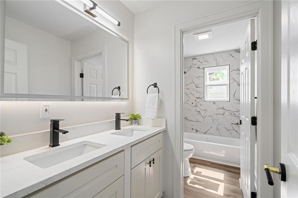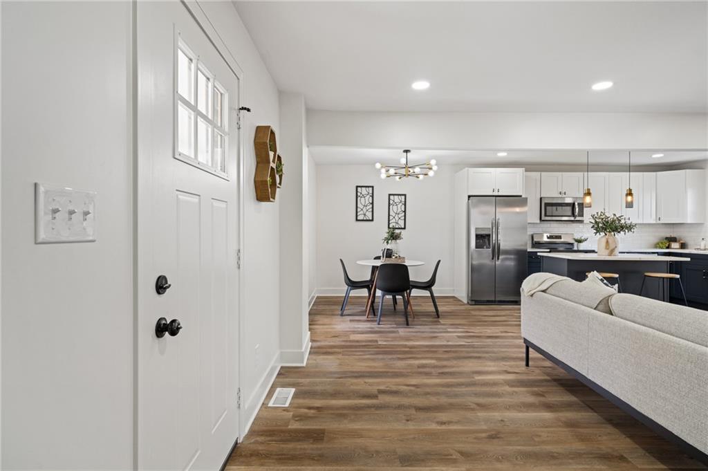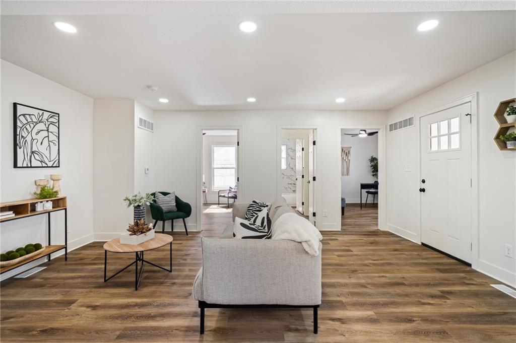 Completely reimagined from the studs up, this beautifully rebuilt 4-bedroom, 2-bath ranch offers the perfect blend of modern updates and comfortable living. Nearly every inch of the home has been thoughtfully rebuilt, giving you the feel of new construction with the charm of a classic ranch layout. The main level features the primary bedroom along with a versatile second bedroom that can easily serve as a home office. Downstairs, you'll find two additional bedrooms and a full bathroom—ideal for guests, family, or extra living space. Enjoy peace of mind with major mechanical updates already done: the roof, HVAC system, and water heater are all just one year old. Inside, stylish LVP flooring runs throughout the home, complementing the bright, airy finishes that create a clean and welcoming feel in every room. With its extensive renovation, smart layout, and modern touches throughout, this home truly stands out as THE ONE to see.