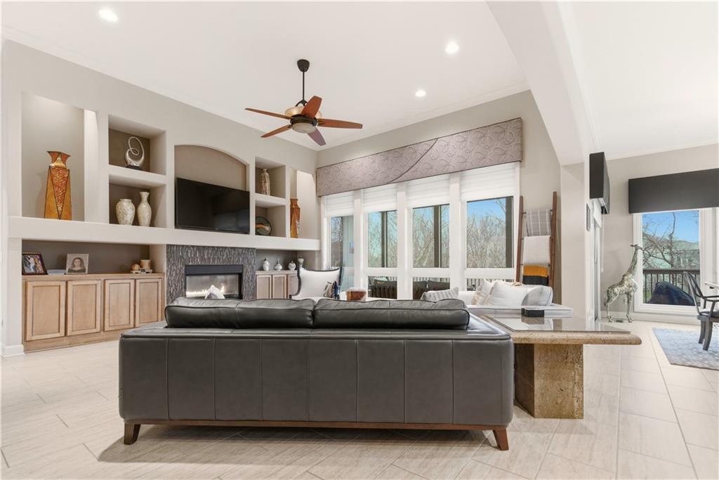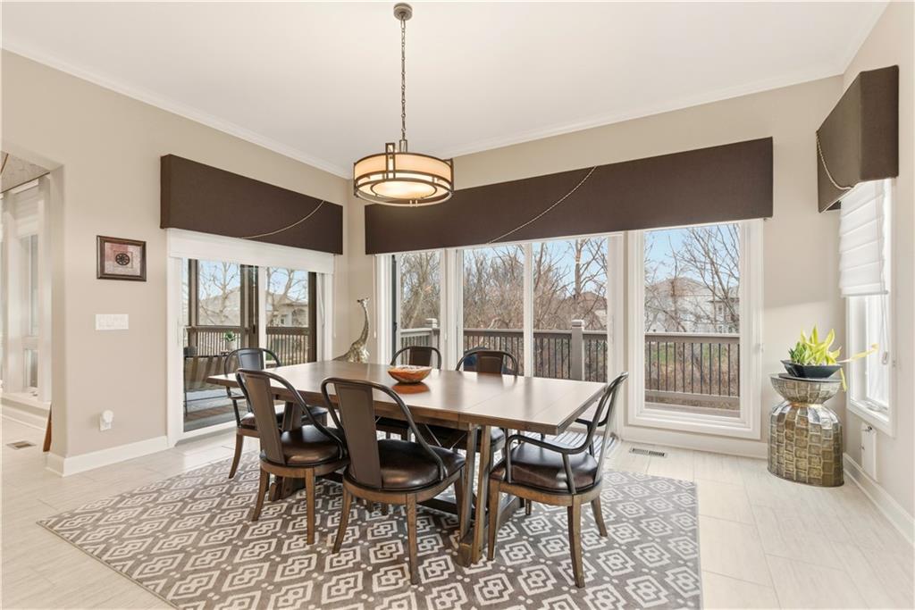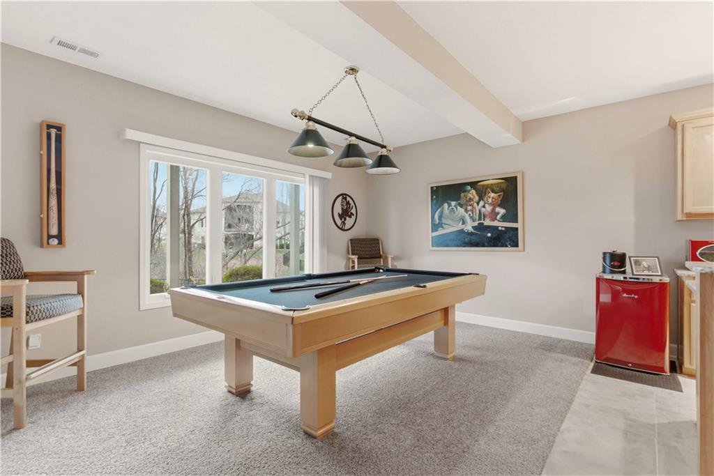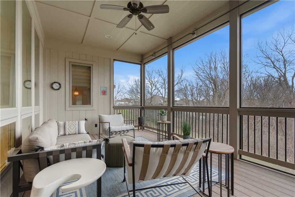 Gorgeous Reverse Story home with awesome Fenced Lot backing to Trees and Greenspace. The Beautiful Curb appeal with Newer Garage Doors will catch your eye with extra bonus of the Seller offering a New Roof by closing! Walk into Soaring Ceilings with a 14' Tall Entry and 12" Ceilings on the entire Main Level with a Wall of Windows to take in this picturesque lot. The Open Floorplan provides a Large Kitchen with Walk-in Pantry, Huge Island, Double Oven, Beautiful Cabinetry, Designer Lighting; which all opens directly to a Dining Area and massive Great Room with Custom Built-in Shelving. You will love the easy access to the Newer Screened in Deck just off the Kitchen which is complete with Stairs to the Fenced Yard. The Spacious Primary Room adjoins to a Primary Bath with Travertine Floors, Granite Counters, & Large Tiled Shower. The Main Floor is also home to a 2nd Bedroom and Full Bath. The Lower Level offers so much Space to Entertain with a Large Family Room with Fireplace, Billiards/Gaming Area, and a 2nd Kitchen/Bar with Built-ins, Tile Floors, Dishwasher and Sink. The 3rd Bedroom is arguably a 2nd Primary Room and the 4th non-conforming Bedroom gives the option of a 4th Bedroom. Storage is not a problem with a 17 x 13 Storage Room with Expoxy Floor! Here is your chance to be the owner of a beautiful Revere Story home on a Private Lot while enjoying all the amenities of the Popular Park Ridge Community which is home to a Clubhouse, Pools, Fitness Center,Trails, Tennis & Pickleball Courts,Playground, & Acres of Greenspace! * Note many items are for sale so view list with prices in supplements.