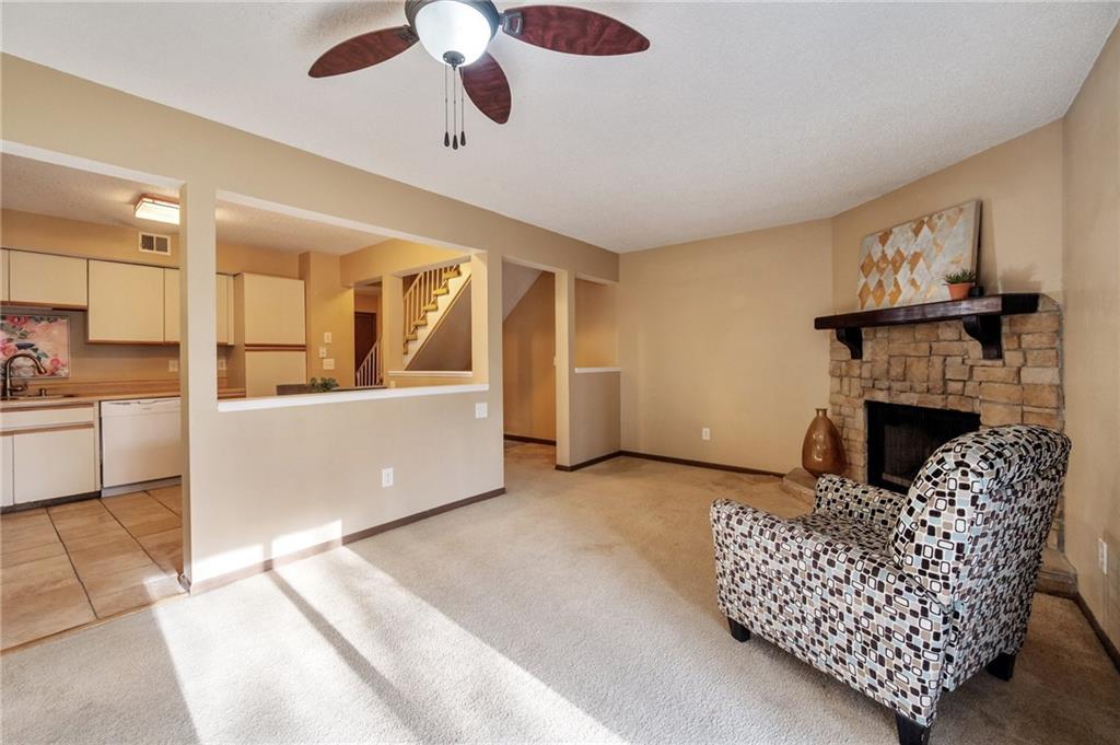 Welcome home to this well kept Townhome in Park Hill Schools. Home features an Open Concept from Living Room to Eat in Kitchen on the main level along with a corner fireplace and a walk out private deck to enjoy your morning coffee. Main level attached garage also makes grocery carry-in to the Kitchen a breeze. Upstairs enjoy 2 very large Bedrooms with double closets, ceiling fans and both w/attached Bath. Master bedroom also features a covered Martini deck. Lower level is finished and has Luxury Vinyl Flooring, built in corner cabinets, and a walks out to a nice patio facing the woods with a running creek behind for privacy and solitude. Back yard is fenced and has a nice built up raised garden. All appliances stay and most are new (see Seller's Disclosure). Location, location, location! Can't beat the easy access to I-29, KCI, Bus Lines, Grocery Shopping and Zona Rosa. Also walkable to Woodsmoke Park. Google Fiber available. Enjoy Homeownership of one of the few Townhomes in Woodsmoke moderately priced and with no HOA dues. OPEN HOUSE 01/18/2026 1:00 PM - 3:00 PM