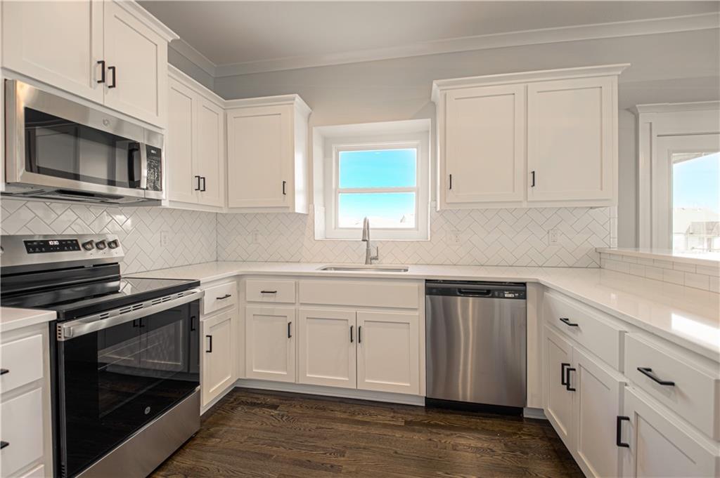 COMPLETED AND MOVE-IN READY**ASK ABOUT OUR BUILDER RATE BUYDOWN INCENTIVE**The "TAYLOR" by Robertson Construction is back by popular demand! This stunning 2-Story offers an Open Layout and lots of attention to detail. A wall of windows overlook the back yard allowing in lots of natural light. Main Level features a Gas Fireplace, Huge WALK-IN PANTRY with lots of storage, Custom built Cabinets with soft close doors, Quartz Countertops, Stainless Appliances, Half Bath, Drop Zone at Garage Entry, Breakfast Room, Formal Dining, and a beautiful staircase leading to the 2nd Level! Upstairs you will find a Private Master Suite and spa-like Master Bath with a separate tub and shower with tile walls. You will also find 3 more Bedrooms, Full Bath and a dedicated Laundry Room. Located in the highly-rated NKC/Staley High School District close to local amenities, outdoor recreation and minutes to Downtown KC and MCI.***ACTUAL PHOTOS OF HOME***
