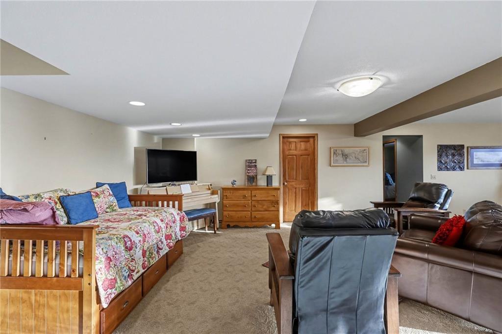 Tucked away on 23 breathtaking acres, this 3,162 sq. ft. Craftsman ranch–style custom log home offers a rare blend of thoughtful design, and unmatched natural surroundings. Built in 2003 and lovingly maintained by its original owners, the home showcases full-round log construction in the central living areas, featuring exposed log trusses, open doorways, and a striking Palladian-style arched picture window that fills the space with natural light. Covered front and back porches invite you to relax and take in the peaceful setting, while cedar-sided, stick-built wings balance beauty with functionality. The main level is designed for effortless living, offering a spacious kitchen, living and dining areas, a walk-in pantry, and custom cabinetry and built-ins throughout. The primary suite includes a full bathroom and a walk-in closet. Two additional bedrooms, a second full bath, multiple linen closets, and a convenient laundry/mudroom are also on this main level. The finished walkout basement expands the living space with a fourth bedroom, third full bathroom, open living/game room, bar, safe room, and abundant storage—including a large utility room and under-stair storage. Comfort and efficiency in the home are enhanced by central air, a heat pump with propane backup, a wood stove fireplace, a radon mitigation system, and high-speed fiber internet. Outdoors, the property is equally impressive with an attached extra deep two-car garage, concrete driveway and patio, 42’ x 64’ shop/barn with a 12-foot door, circular gravel drive, garden shed, raised garden beds, and a landscaped backyard bonfire ring. Crafted from dead-standing pine and fir timber sourced from Wyoming, this one-of-a-kind home is perfectly positioned on a paved, lightly traveled road just one mile from Smithville Lake’s Mecca Access and boat ramp—offering true country living without gravel roads. The acreage borders U.S. Corps of Engineers land along Smithville Lake, ensuring privacy and protected views.