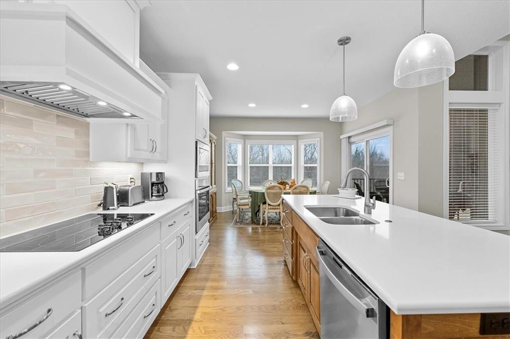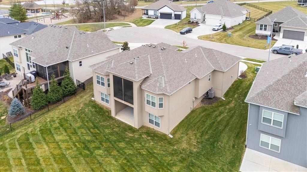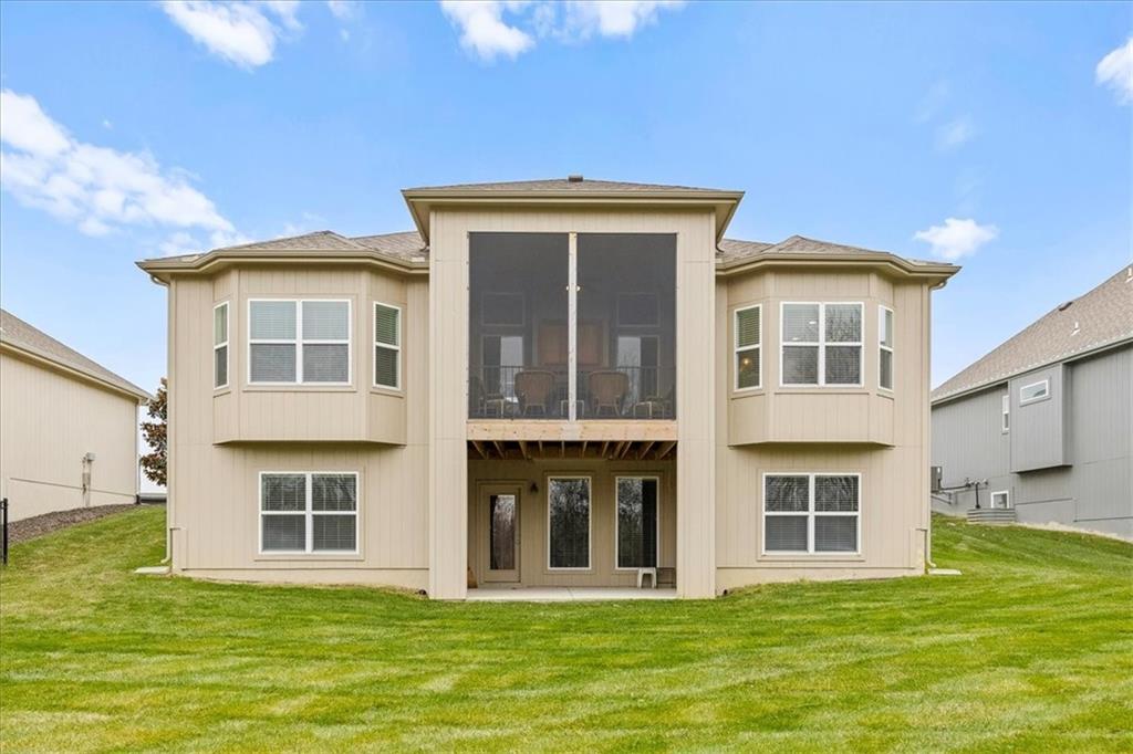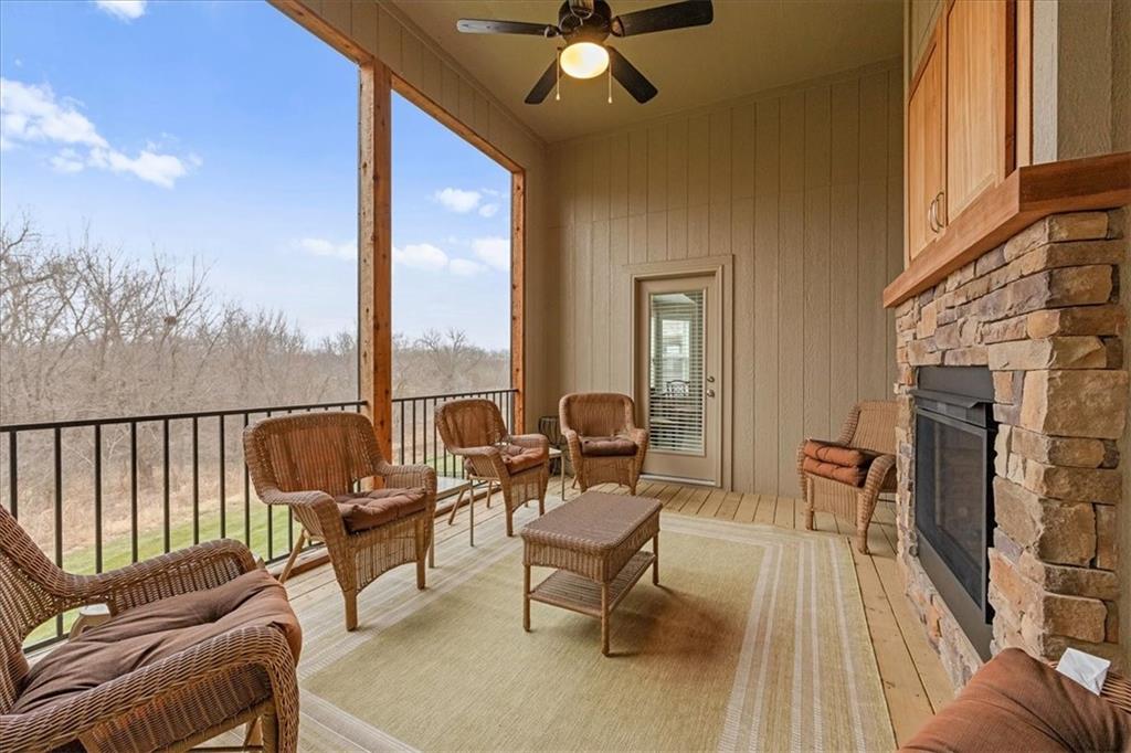 Like new in a GOLF COURSE community. WALKOUT lot that BACKS TO TREES on a CUL-DE-SAC with LAWN MAINTENANCE and SNOW REMOVAL provided. This beautiful home has it all! Lightly lived in and ready for new homeowners. One special feature is a high end stair lift which can be removed if buyer prefers. Other notable features include 12 foot ceilings and a double sided fireplace that can be enjoyed in the Great Room or on the three sided screened deck, protected from the wind and weather, see through fireplace! Nice kitchen with quartz countertops features a large pantry and wall oven. Spacious back entry with laundry room and half bath. Primary bedroom includes beams in the boxed up ceiling and a bay window. Primary bath features standalone tub and all tile walk-in shower. The second bedroom on the main level has a ensuite bathroom featuring a walkin tub. The lower level family room includes a wet bar and walks out to the patio and backyard. Bedroom 3 and 4 and a third full bath round out the lower level. Lawn maintenance includes mowing/trimming/blowing, weed/feed, sprinkler turnon/off, and landscape maintenance. Snow removal over 2". The Communities of Falcon Lakes is conveniently located right off K7 and is only 10 minutes to the Legends Shopping and Entertainment district and an easy 30 minutes to the airport. Acclaimed Basehor-Linwood schools.
