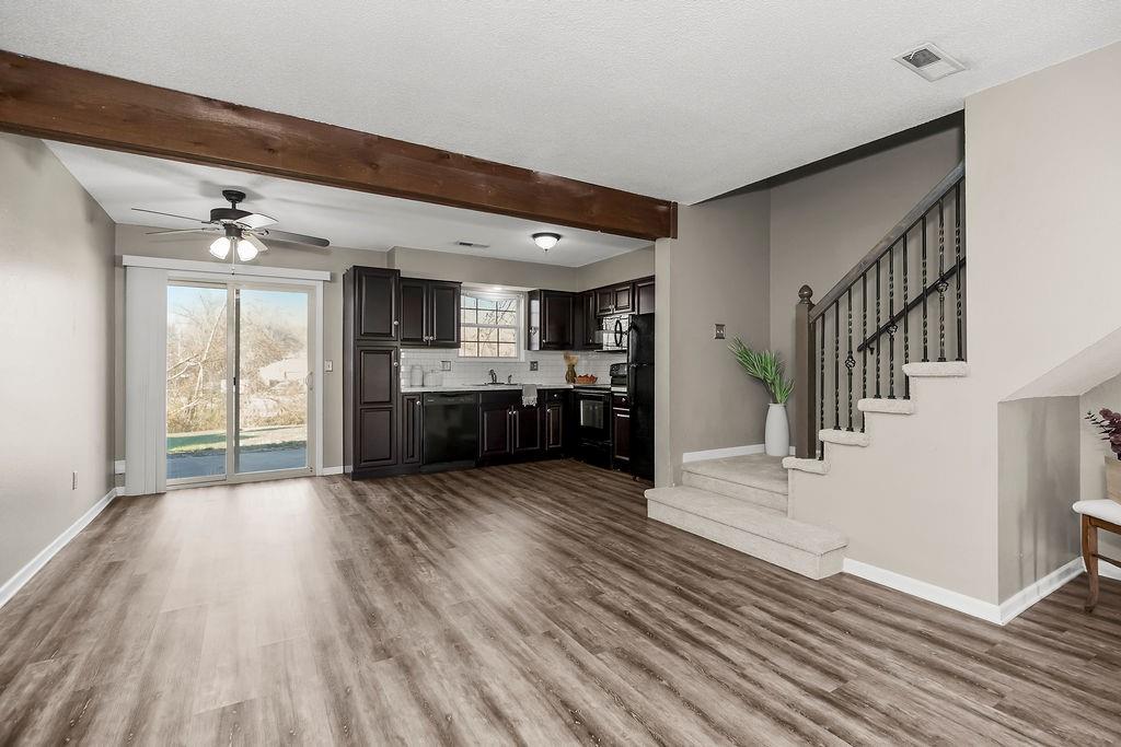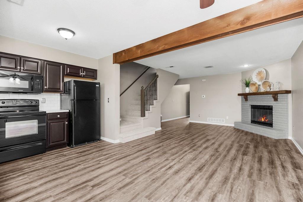 Charming, move-in ready townhouse with stylish updates in a prime location! The inviting family room features modern luxury vinyl plank flooring and a cozy corner fireplace—perfect for relaxing or entertaining. The updated kitchen shines with subway tile backsplash and solid-surface countertops and flows seamlessly into the dining area with direct access to the private back patio. Fridge stays! You'll find a convenient main level half bath as well. Upstairs, enjoy brand-new carpet throughout, including a spacious primary suite with vaulted ceilings and a walk-in closet. A generous second bedroom and a full bath with luxury vinyl plank flooring complete the upper level, along with the convenience of bedroom-level laundry. The HOA covers lawn care, trash, and exterior maintenance (studs out), making for truly low-maintenance living. The roof is only five years old for added peace of mind. All of this just minutes from vibrant downtown Lee’s Summit—shopping, dining, entertainment, and easy highway access for commuters. Don’t miss this one—schedule your showing today!