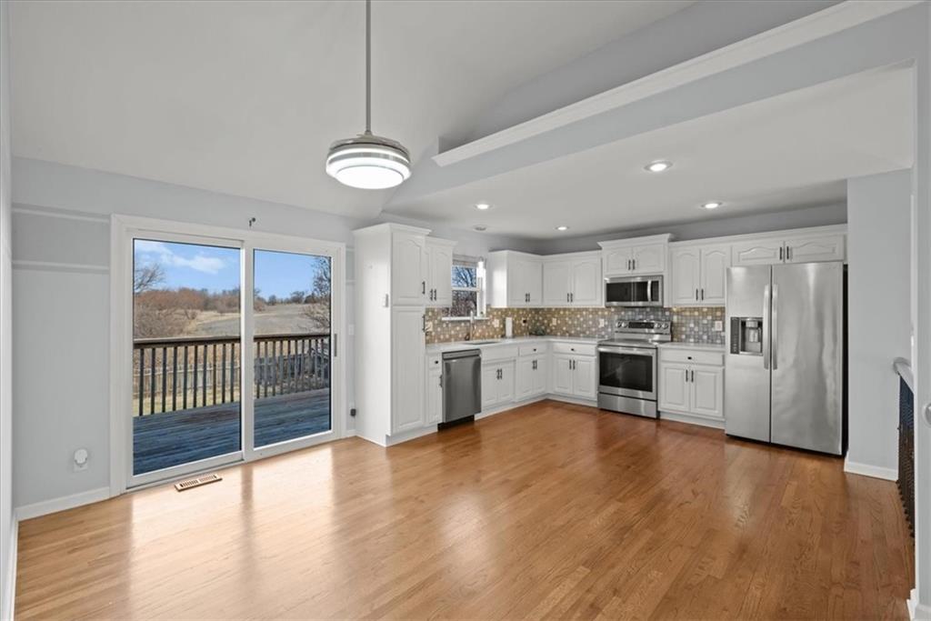 Turnkey and move-in ready! This beautifully updated front-to-back split offers exceptional space and versatility. The oversized front living room provides more room than typically found in the area, perfect for relaxing or entertaining. The lower level features a 4th bedroom and full bathroom—ideal for guests, a home office, or private retreat—while an additional sub-basement offers abundant storage and flexible space for your needs. The kitchen is a showstopper with painted cabinets, quartz countertops, a stylish backsplash, and stainless steel appliances—all included, along with the refrigerator, washer, and dryer. Fresh interior paint, updated trim, new laminate flooring throughout, and renovated bathrooms create a bright, move-in-ready home. The main suite boasts a walk-in closet, soaking tub, and separate shower, offering a private retreat at the end of the day. Step outside to an oversized deck and fenced backyard, perfect for entertaining, pets, or outdoor relaxation. Additional updates include a 3-year-old HVAC system, a 1-year-old hot water heater, fresh interior paint, new trim, and updated lighting. Located in the highly regarded Basehor School District and just minutes from Fort Leavenworth, this home is also close to a new grocery store and all the conveniences of town. Whether you’re looking for space, comfort, or a move-in-ready lifestyle, this home has it all!