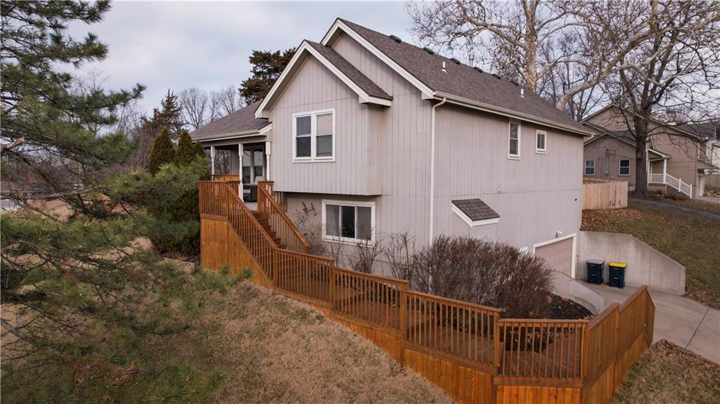 Welcome to a truly one-of-a-kind home that instantly feels warm, open, and inviting. As you step inside, soaring ceilings and a flowing open floor plan create a light-filled space that’s perfect for both everyday living and memorable gatherings. The front windows frame stunning Downtown skyline views and deliver some of the most beautiful sunsets you’ll enjoy from the comfort of your own living room. With two spacious living areas, there’s room to relax, unwind, or entertain with ease. The vaulted living room sets the tone, while the second family room offers a cozy fireplace with built in bookshelves and plenty of natural daylight, ideal for quiet evenings snuggling up with a book. The kitchen is both functional and welcoming, featuring abundant cabinetry and a sunny breakfast nook where mornings feel easy and unhurried. The generous primary suite is a peaceful retreat with a huge walk-in closet and a private bath complete with a jetted tub and separate shower while the other 2 Bedrooms have direct bathroom access to the Jack-n-Jill bathroom. Downstairs, a 28x18 finishable sub-basement space offers endless possibilities, while the garage which could double as an indoor basketball court with 14-foot ceilings, adds a fun and unique touch you won’t find anywhere else. The spacious backyard provides a great spot for pets, play or outdoor relaxation with the newly constructed privacy fence. Ideally located with quick access to I-435 and I-35, this home blends comfort, character, and convenience in a way that’s truly special. HOMEBUYER SPECIAL: Sellers are offering new carpet to be installed prior to closing; carpet samples are available at the home for buyer selection.