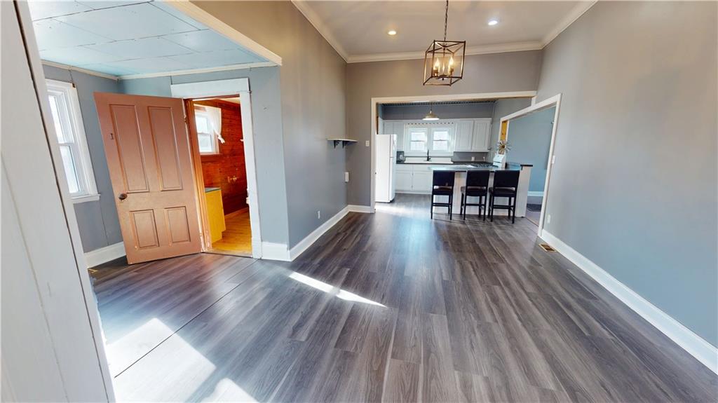 Nestled on a generous 0.27-acre lot, this charming residence offers a perfect blend of comfort and functionality. The home features three spacious bedrooms and two full bathrooms, providing ample space for family and guests. As you approach, a welcoming front porch invites you to sit and relax. Inside, the main floor flows naturally, connecting the light-filled living room with a dedicated dining room—ideal for meals and entertaining. The kitchen is centrally located and serves as the heart of the home. Practicality is key, with a large mud room/laundry room conveniently located on the back of the house, offering a transition space from the yard and providing easy access for chores. The property extends its appeal outdoors. The sizable yard includes a functional shed for storage, along with a separate small building—a versatile space that would be perfect as a private workshop or a peaceful craft room. This property truly combines comfortable interior living with great outdoor utility.