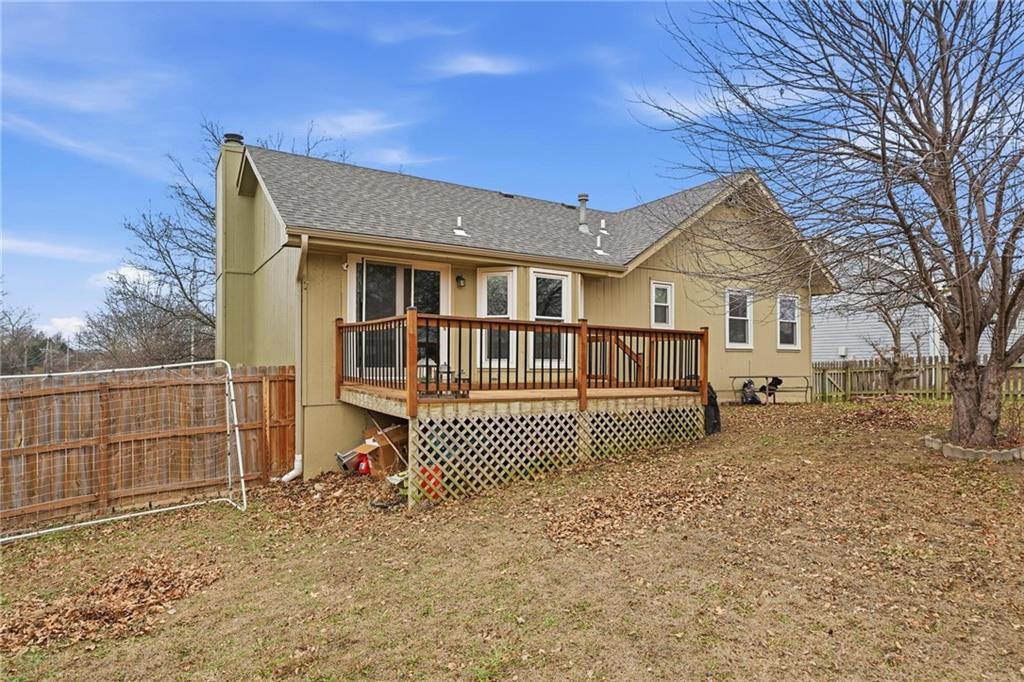 Beautiful home in neighborhood with small community vibes, this 3-bedroom, 2.5-bath split level home is ready for new owners. Open feel to the family room with vaulted ceiling and gas starter fireplace. Kitchen and dining rooms are graced with several floor to ceiling windows, and again high ceilings. Deck off the dining area leads to a level backyard for gardens, games, and more. Fully fenced! Finished basement and half bath in basement. New paint outside as well! Seller OFFERING $4K in carpet allowance!! Perfect location to Kansas City via major highways, and just a short jaunt to Liberty.